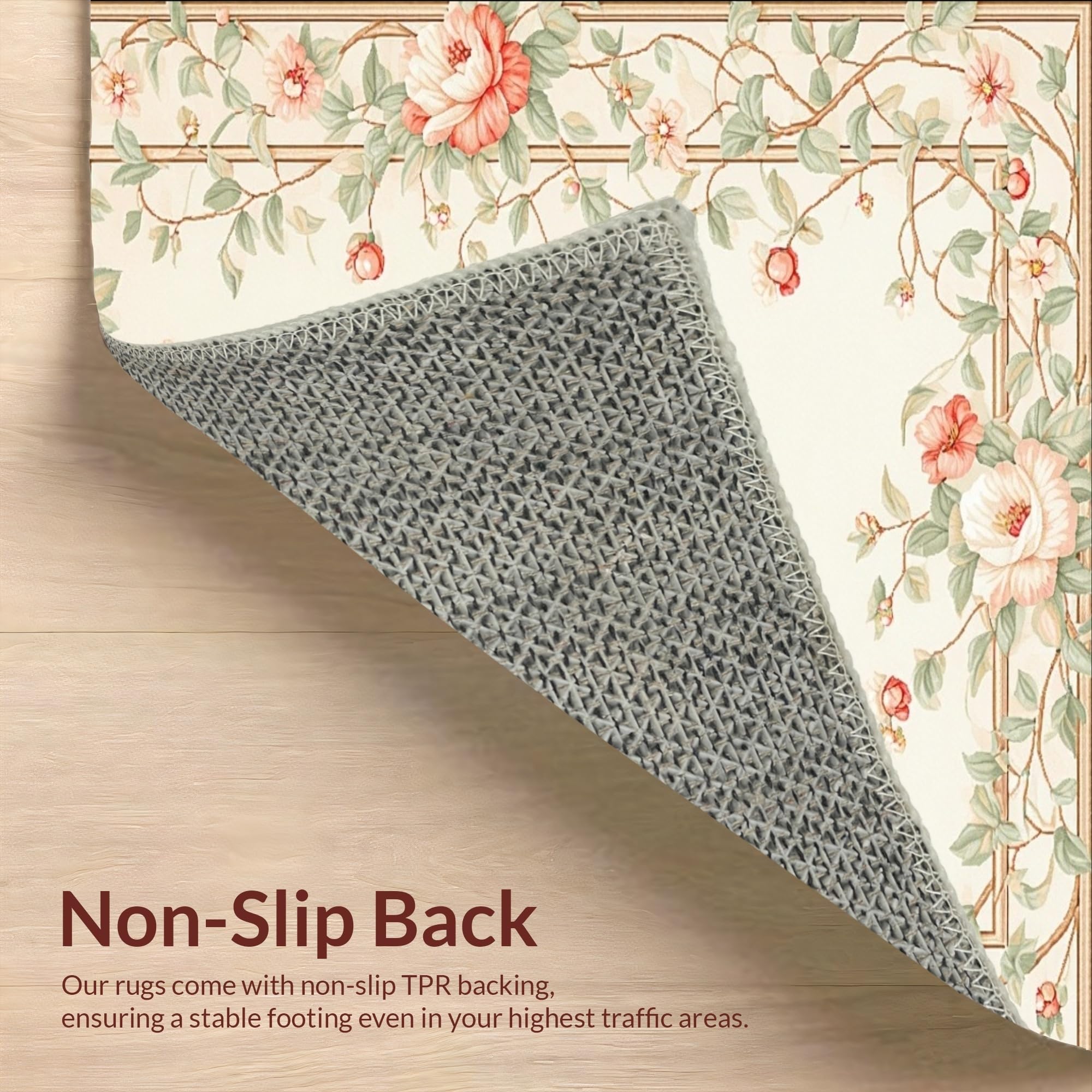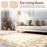 Ultra Soft Area Rug, Non Slip, Stain Resistant, Washable Area Rugs for Living Room, Bedroom, Boho Floral with Vintage Botanical and Pastel Accents(Beige) Overview: