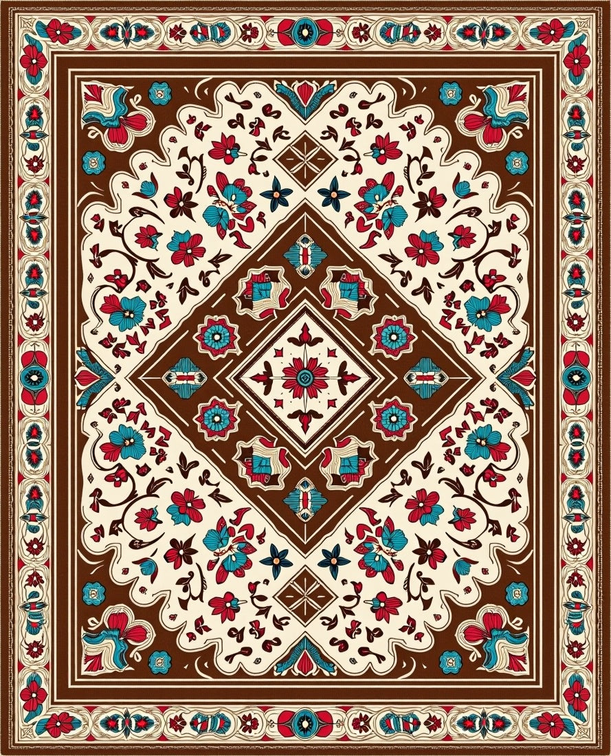 Boho Hexagonal Featuring Ornate Interwoven Floral Designs(Brown)