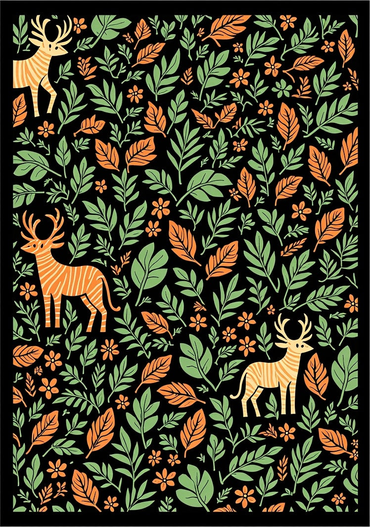 Boho Jungle Adventure with Whimsical Fauna and Falling Leaves(Black)