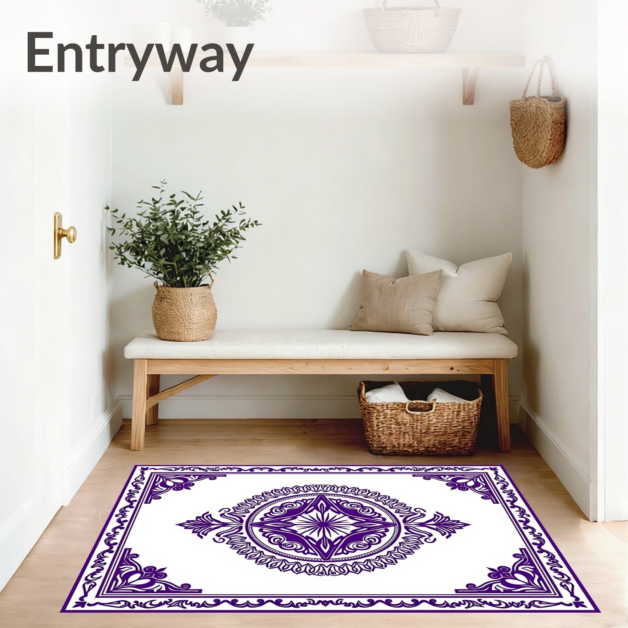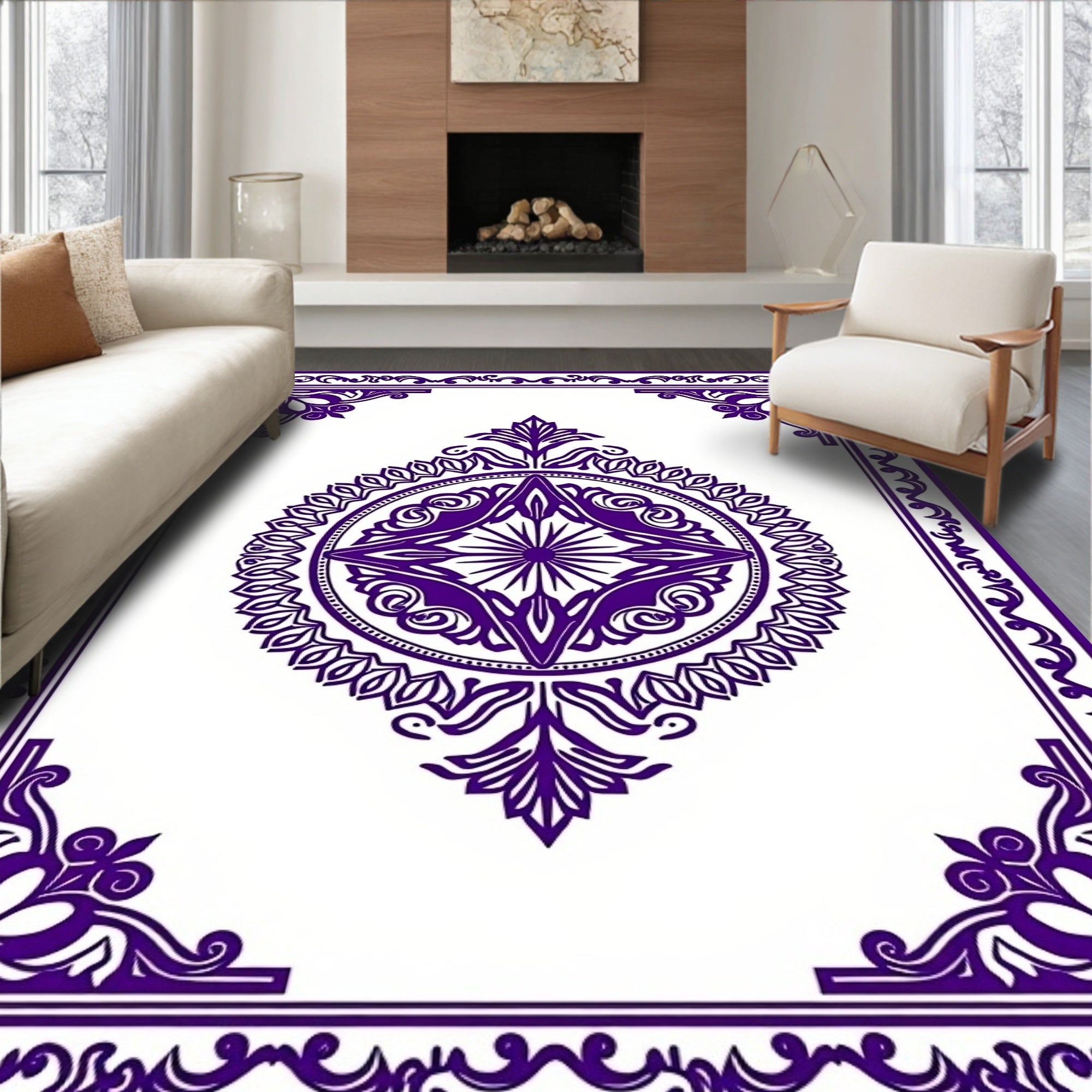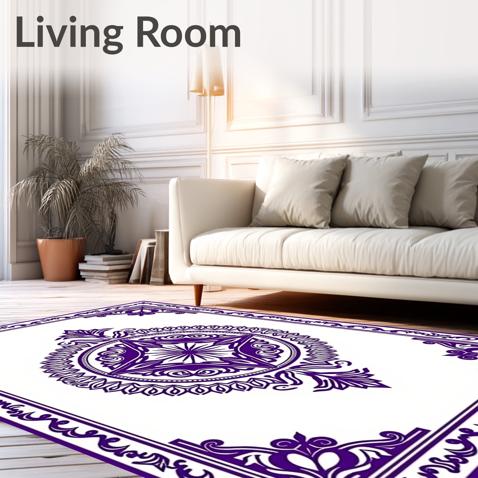 Flatwoven High Traffic Area Rug, Boho Medallion Ornate Vintage Heirloom Treasure Jewel, Non Slip, Stain Resistant, Washable Area Rugs for Living Room, Bedroom (Purple) Overview: