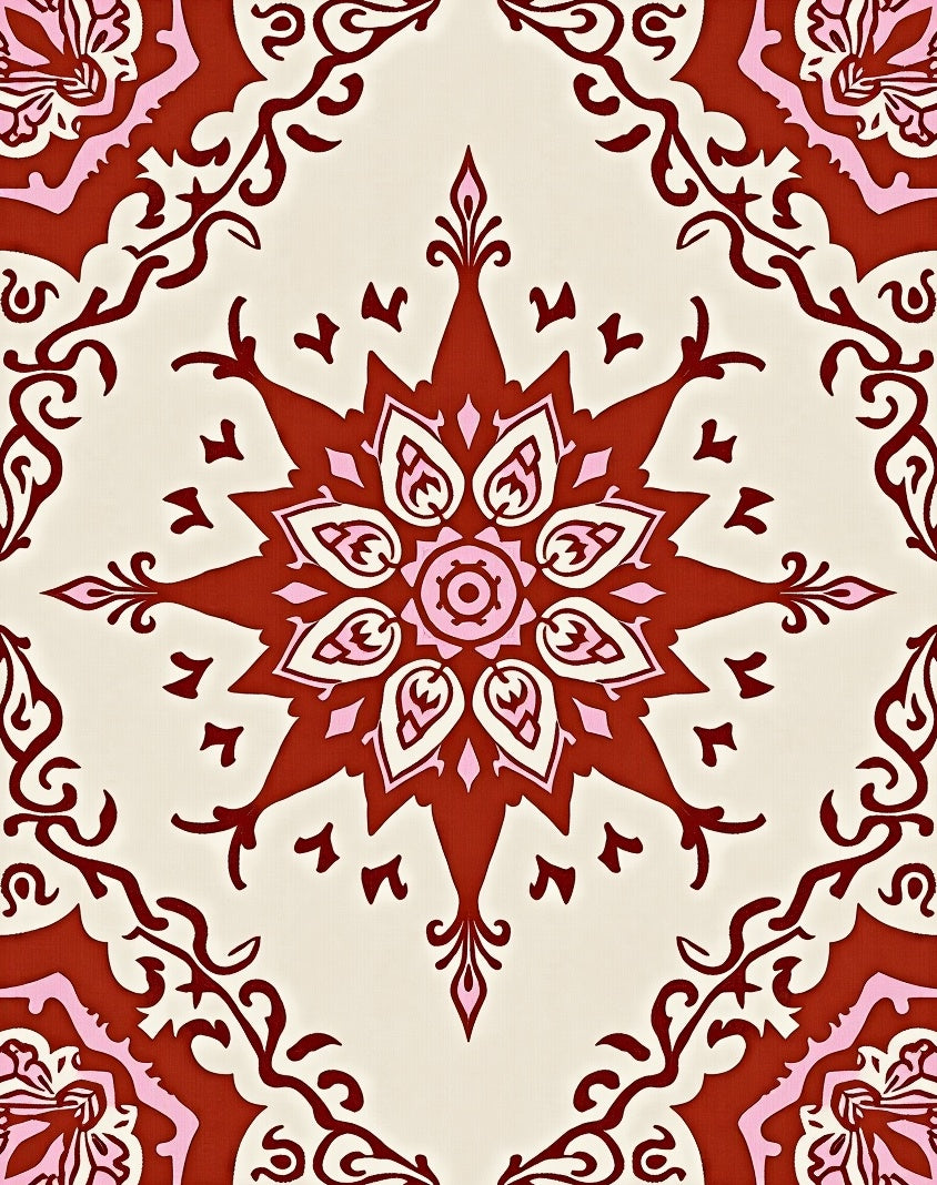 Boho Mosaic Medallion with Ornamental Vine Accents(Brown)