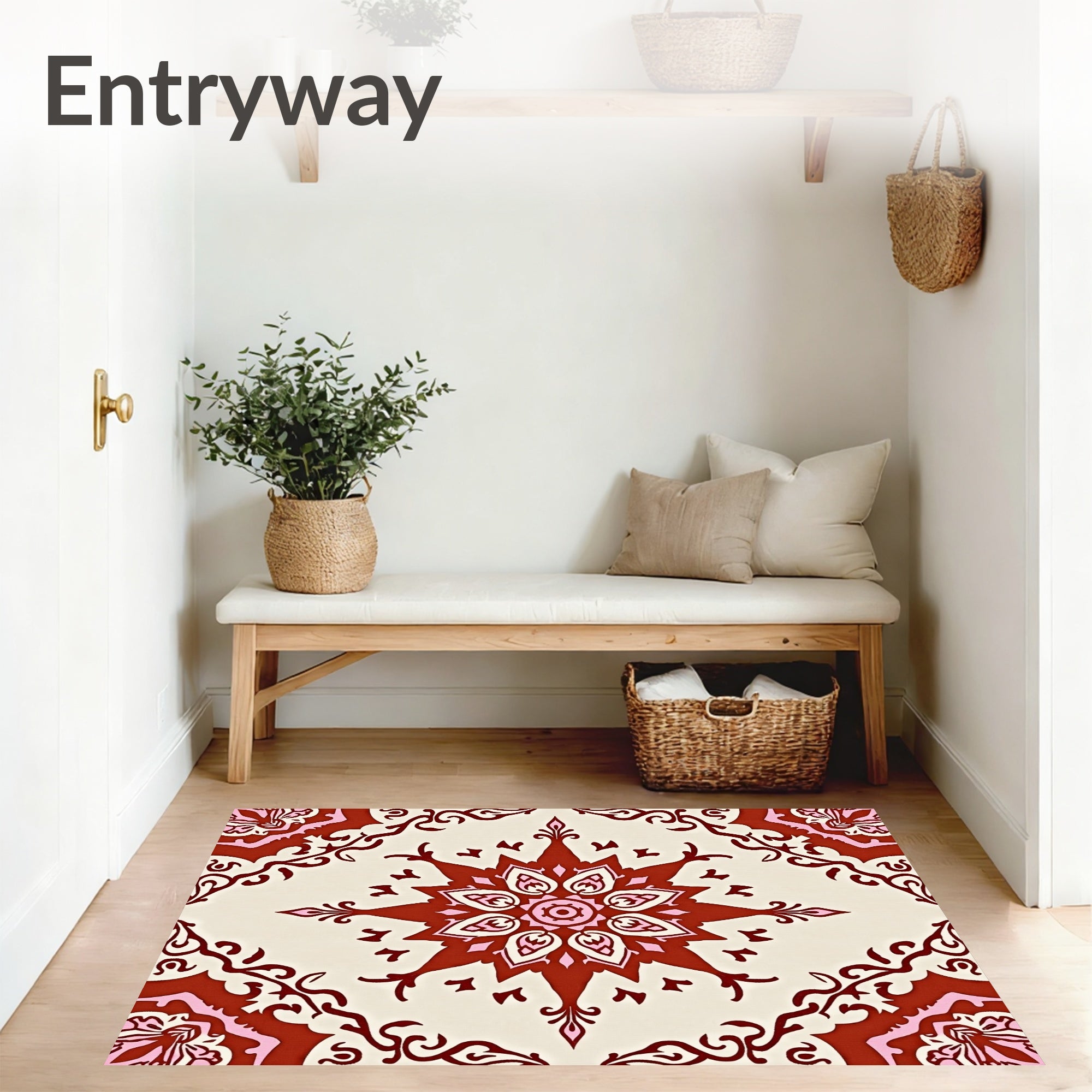 Flatwoven High Traffic Area Rug, Boho Mosaic Medallion with Ornamental Vine Accents, Non Slip, Stain Resistant, Washable Area Rugs for Living Room, Bedroom (Brown) Overview: