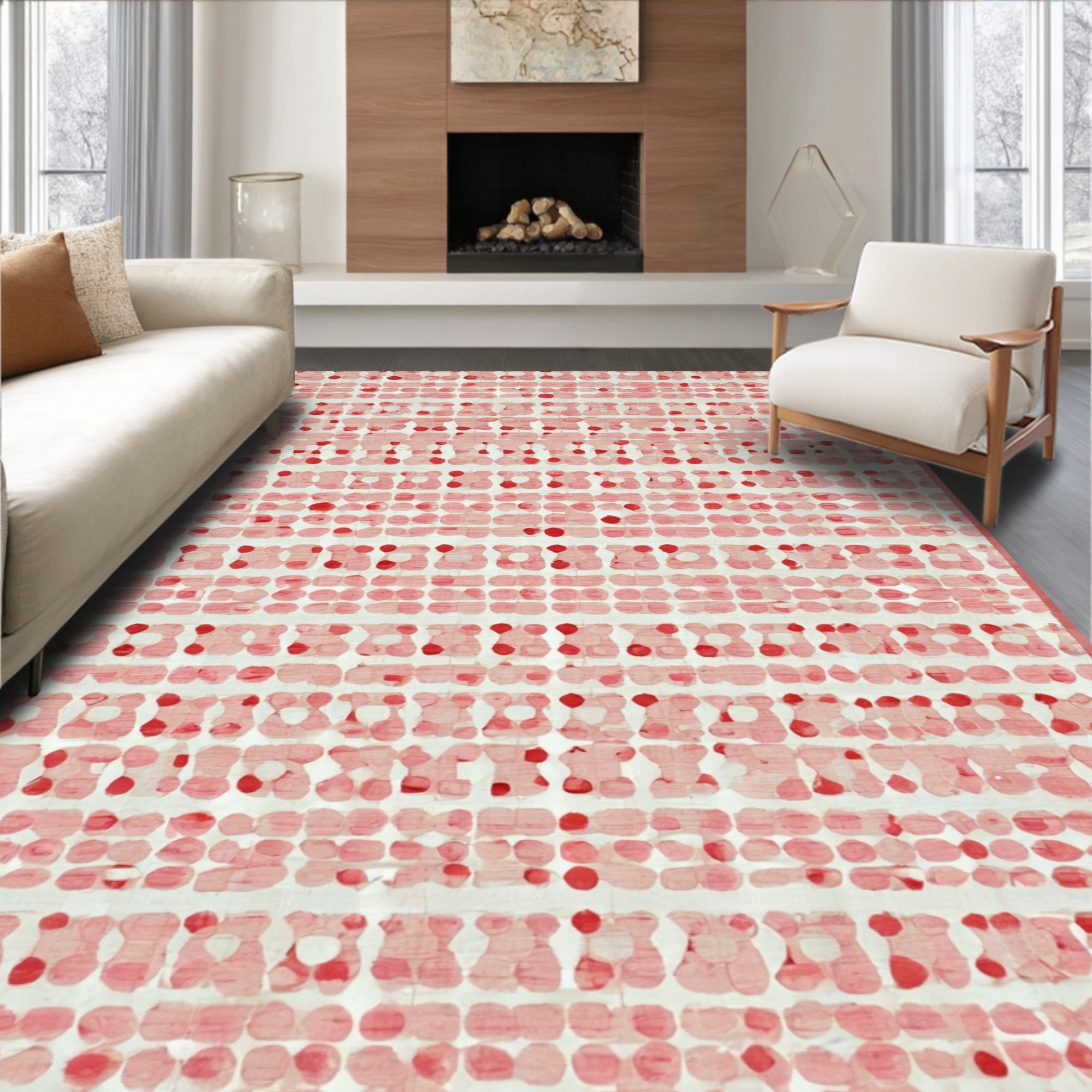 Ultra Soft Area Rug, Non Slip, Stain Resistant, Washable Area Rugs for Living Room, Bedroom, Boho Pink Bow Carpet, Seamless Ribbons(Red) Overview: