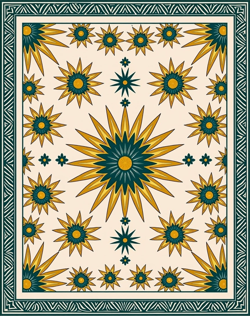 Boho Sunburst Mosaic with Ornate Floral Medallions(Beige)