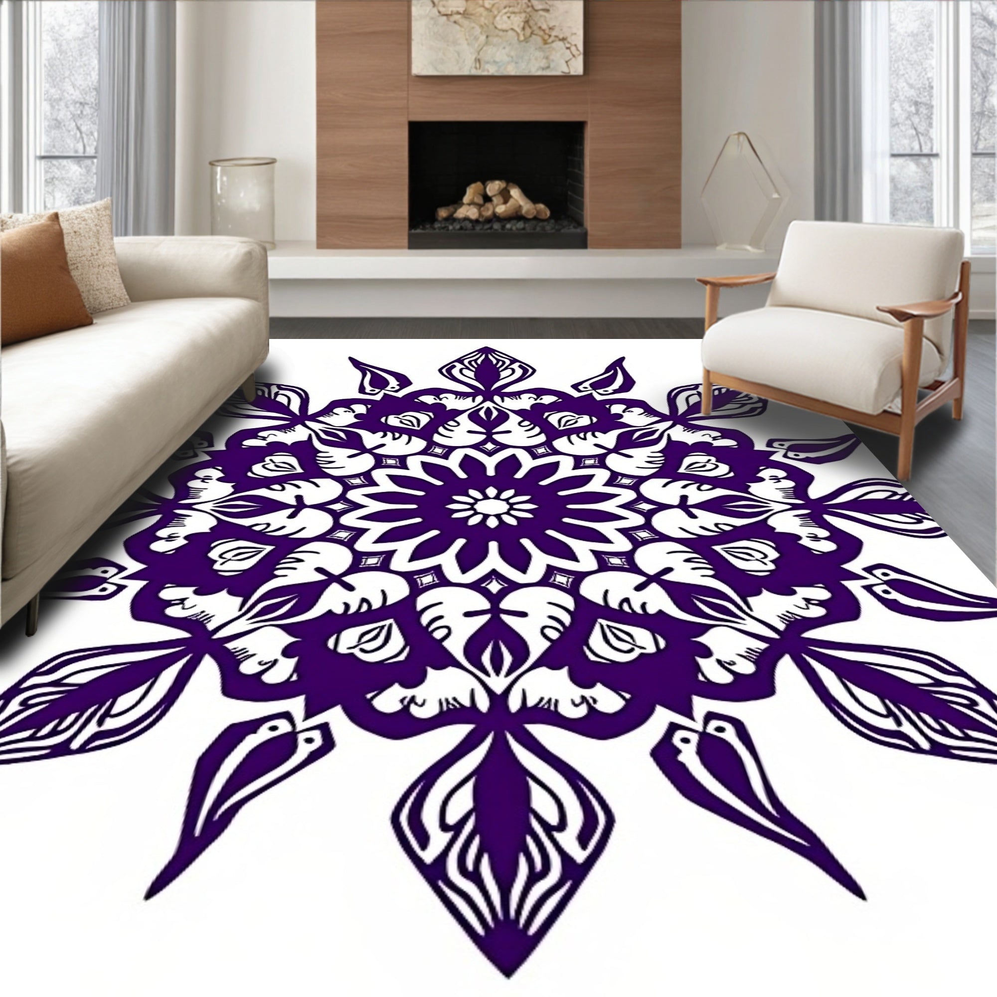 Flatwoven High Traffic Area Rug, Boho Sunburst Zen Tranquil Jewel, Non Slip, Stain Resistant, Washable Area Rugs for Living Room, Bedroom (Purple) Overview: