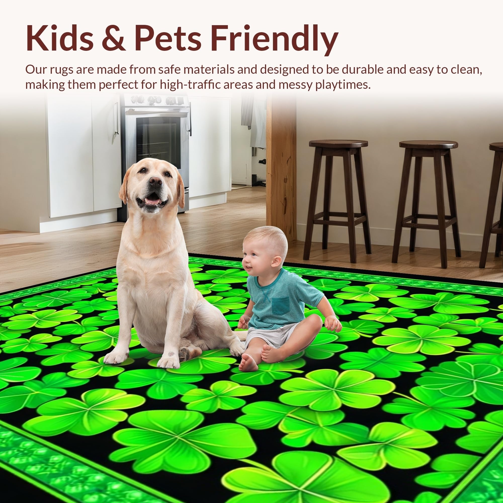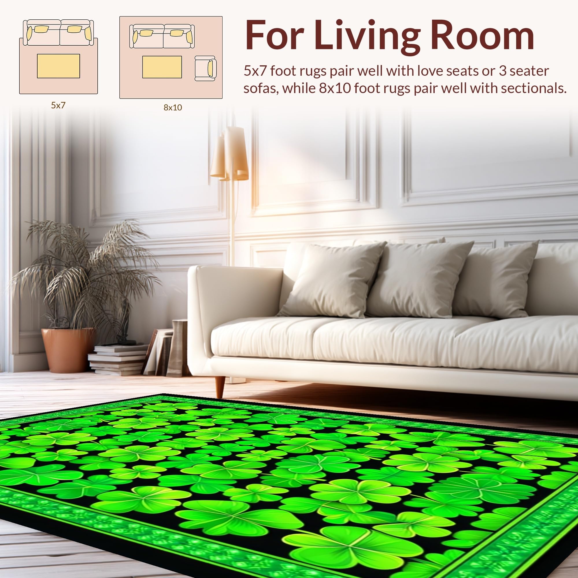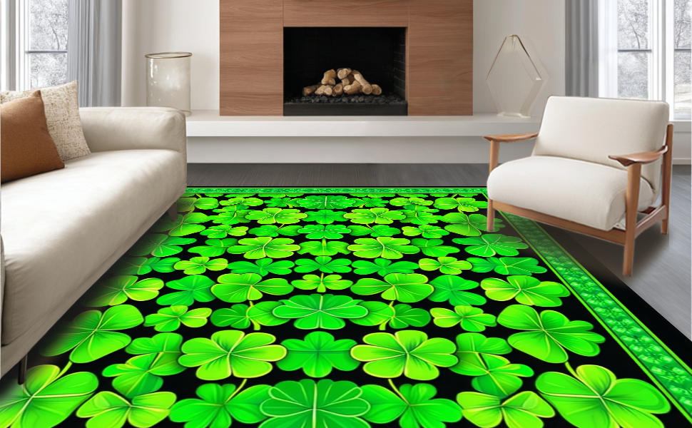 Ultra Soft Area Rug, Non Slip, Stain Resistant, Washable Area Rugs for Living Room, Bedroom, Bold Black and Green Floral Style(Green) Overview: