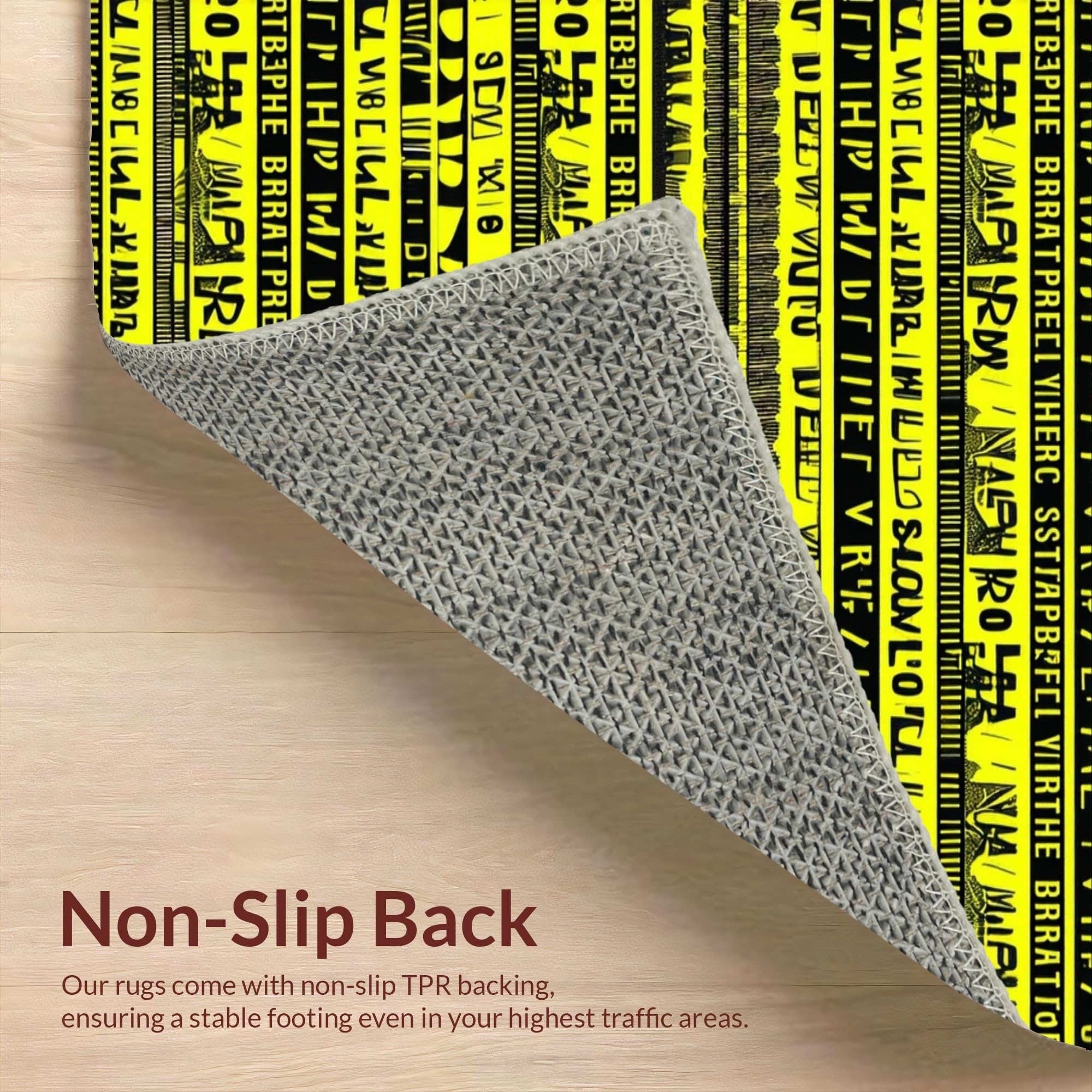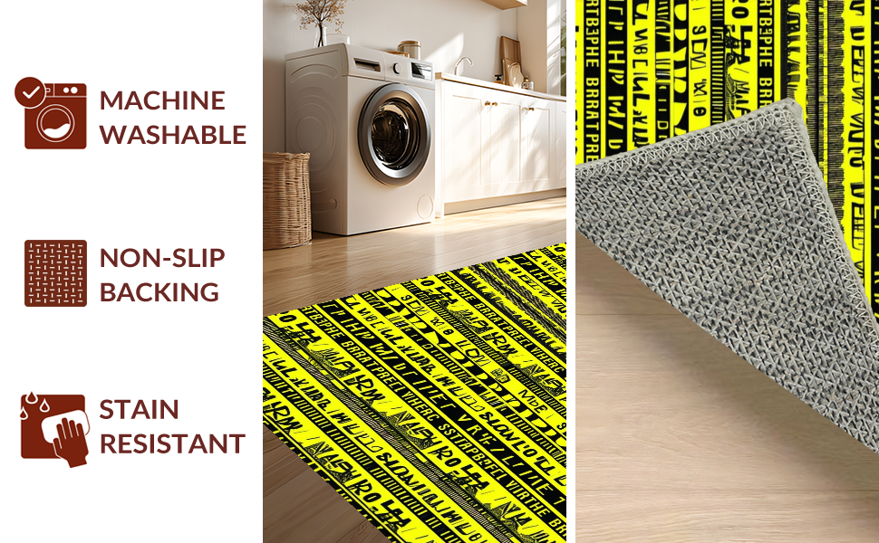 Ultra Soft Area Rug, Non Slip, Stain Resistant, Washable Area Rugs for Living Room, Bedroom, Bold Black and White Lettering(Black) Overview: