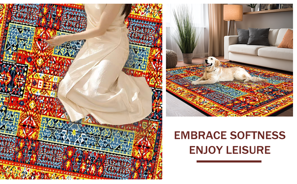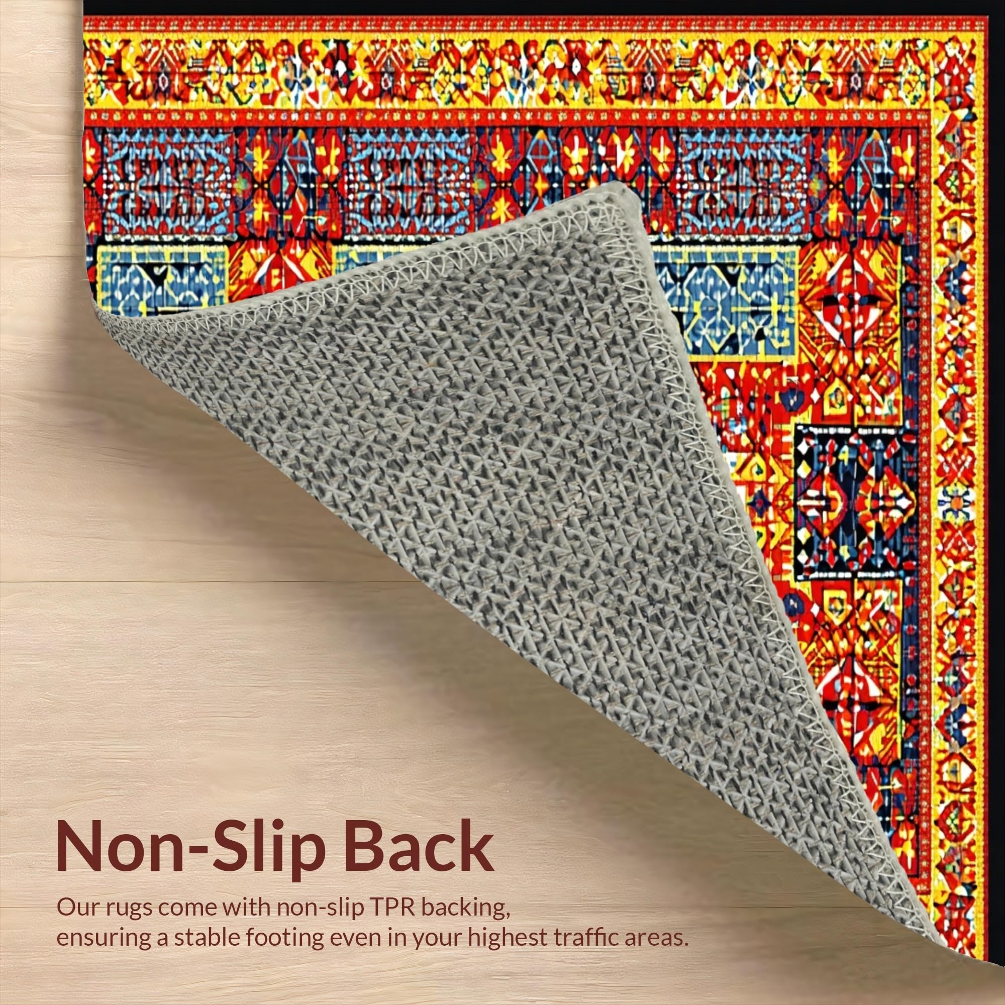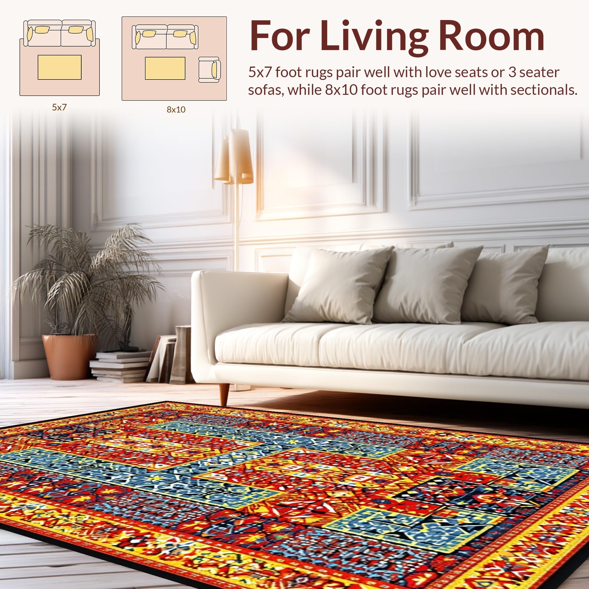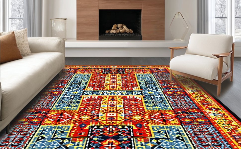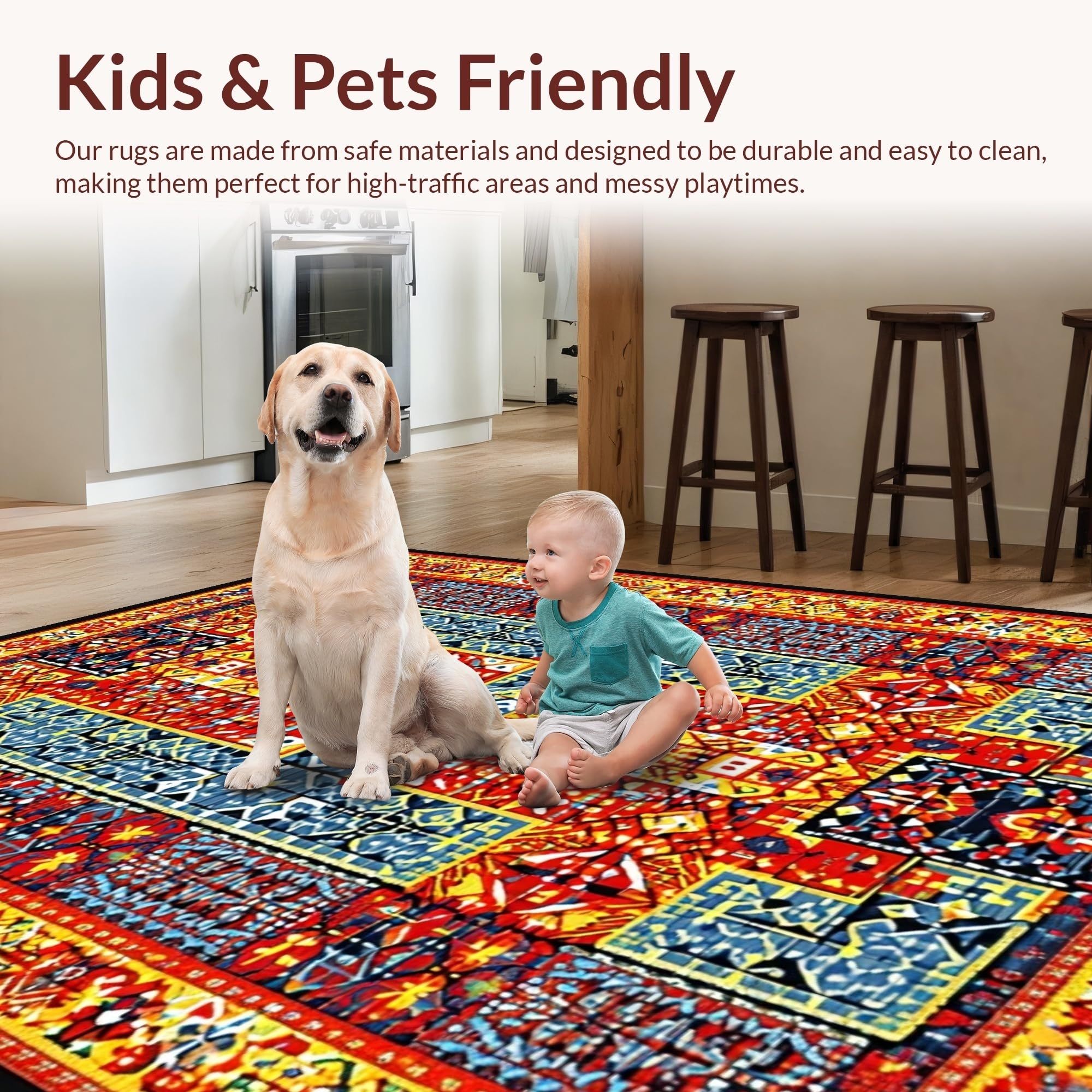 Ultra Soft Area Rug, Non Slip, Stain Resistant, Washable Area Rugs for Living Room, Bedroom, Bold Color Burst Medallion Theme(Red) Overview: