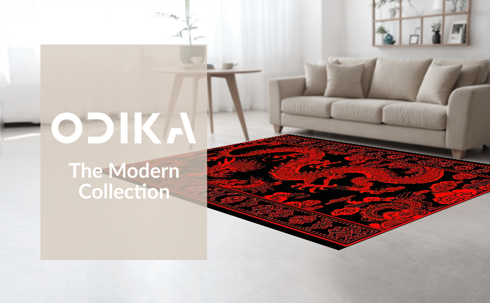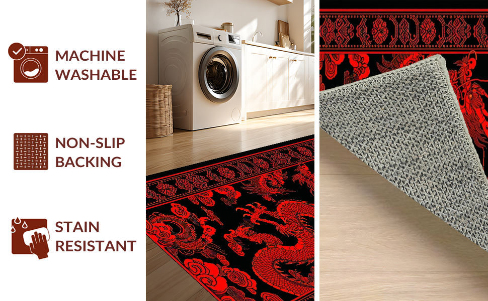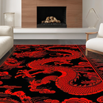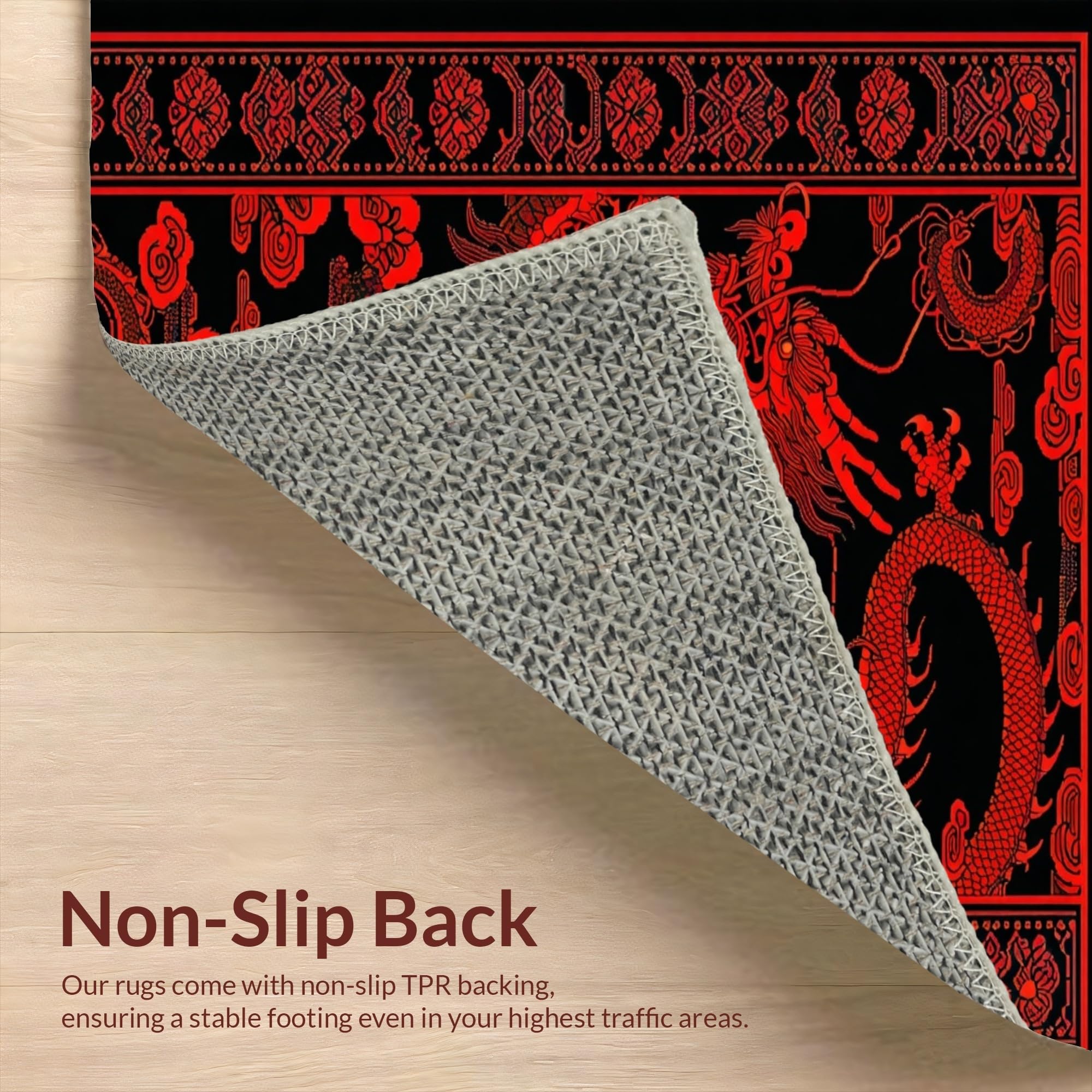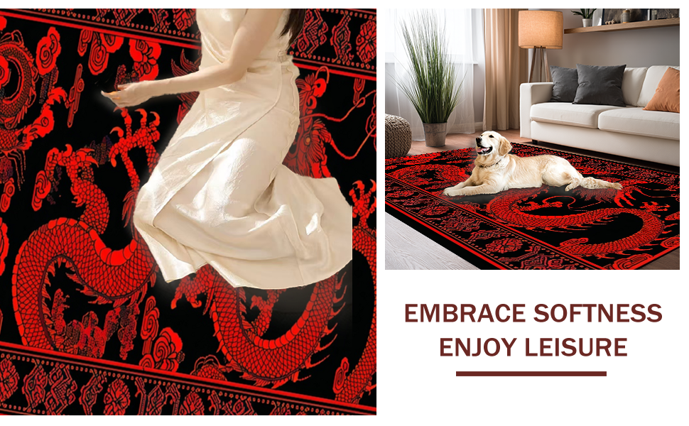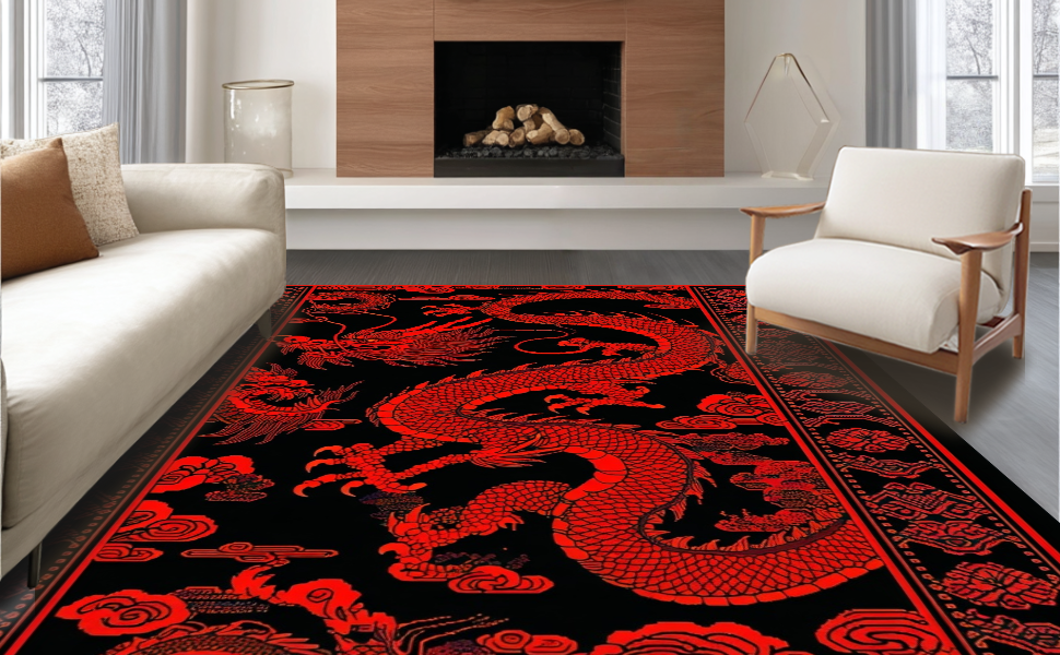 Ultra Soft Area Rug, Non Slip, Stain Resistant, Washable Area Rugs for Living Room, Bedroom, Bold Color Clash Dragon Design(Red) Overview: