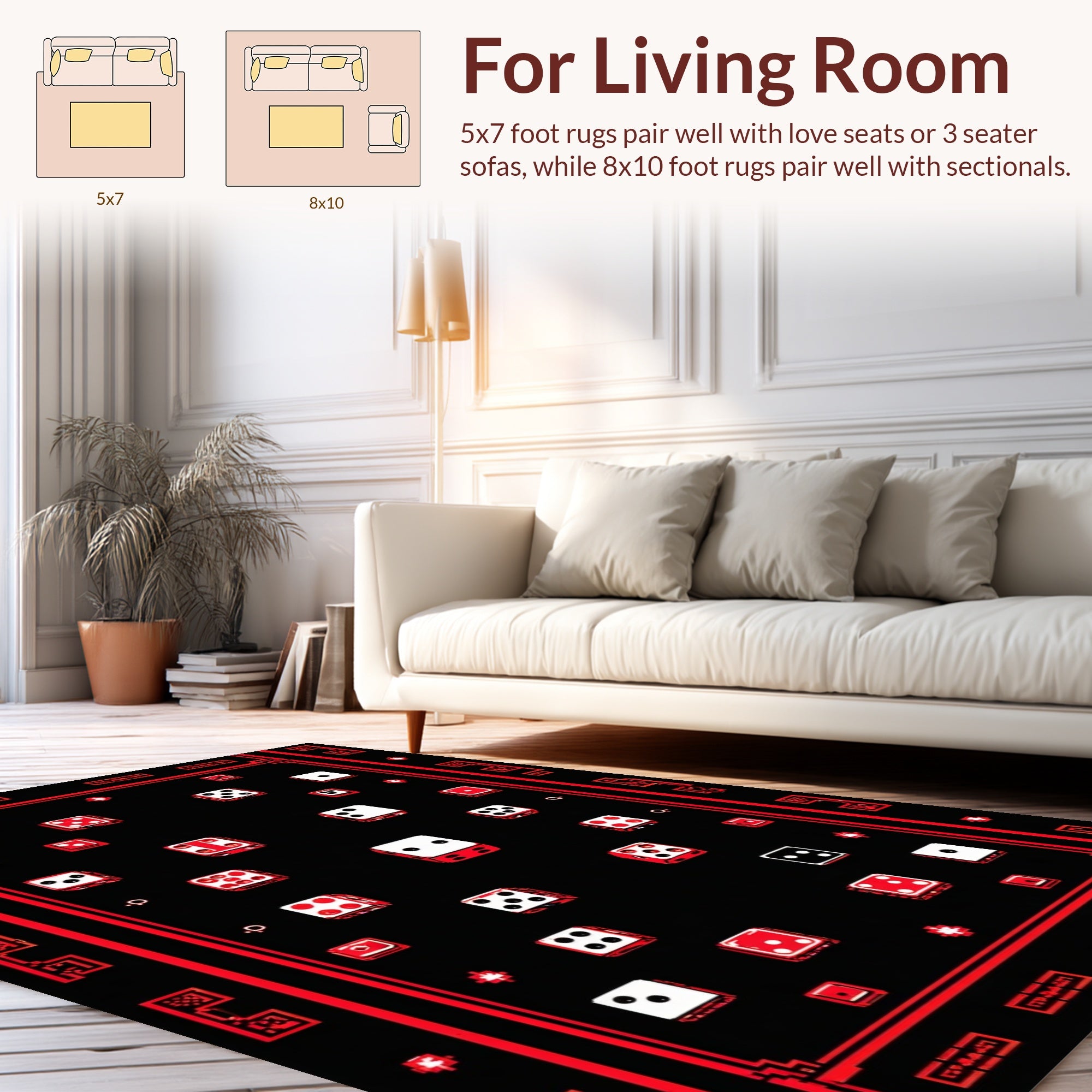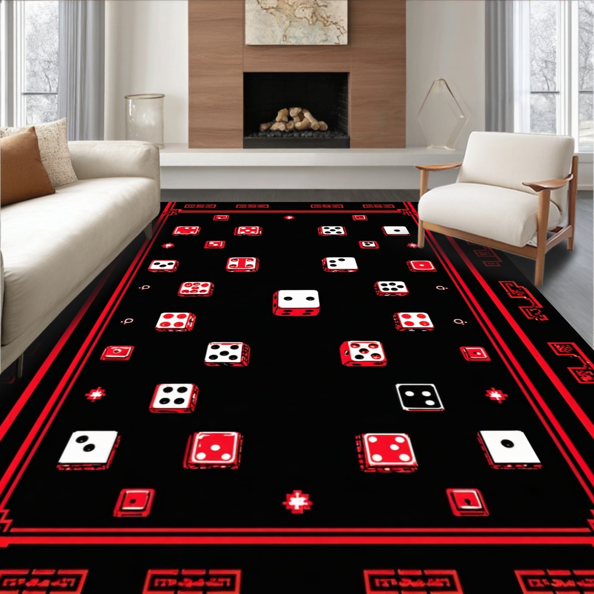 Flatwoven High Traffic Area Rug, Bold Contemporary Dice Composition, Non Slip, Stain Resistant, Washable Area Rugs for Living Room, Bedroom (Red) Overview: