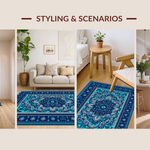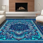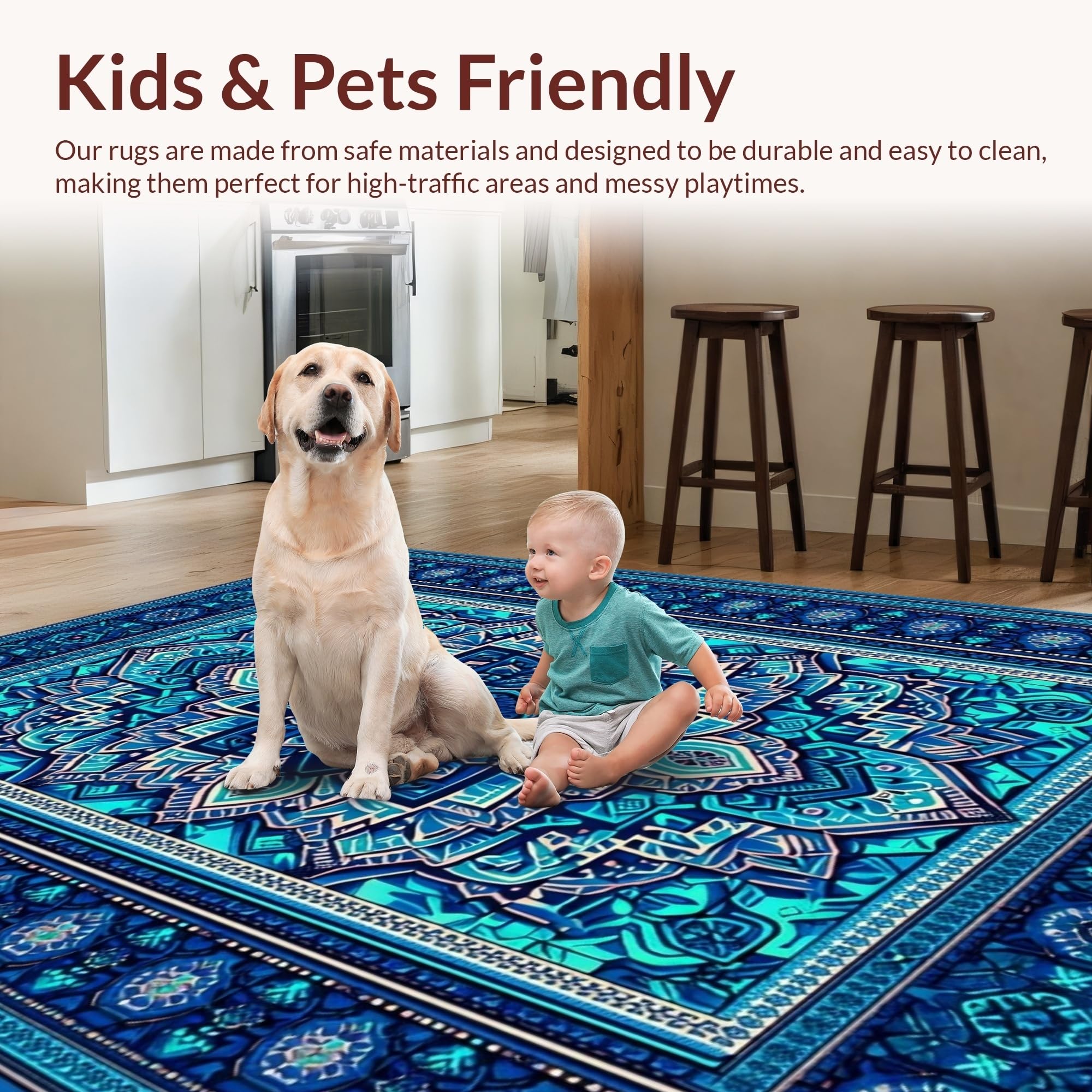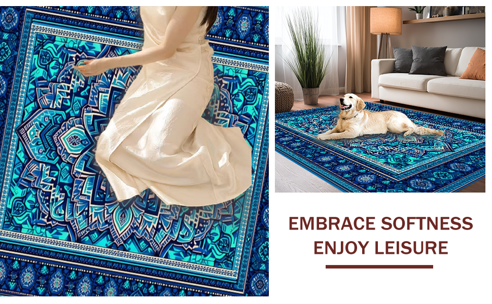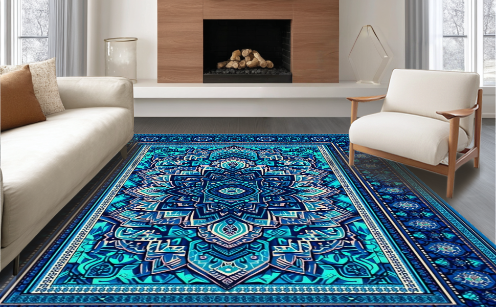 Ultra Soft Area Rug, Non Slip, Stain Resistant, Washable Area Rugs for Living Room, Bedroom, Bold Geometric Circular Artwork(Blue) Overview: