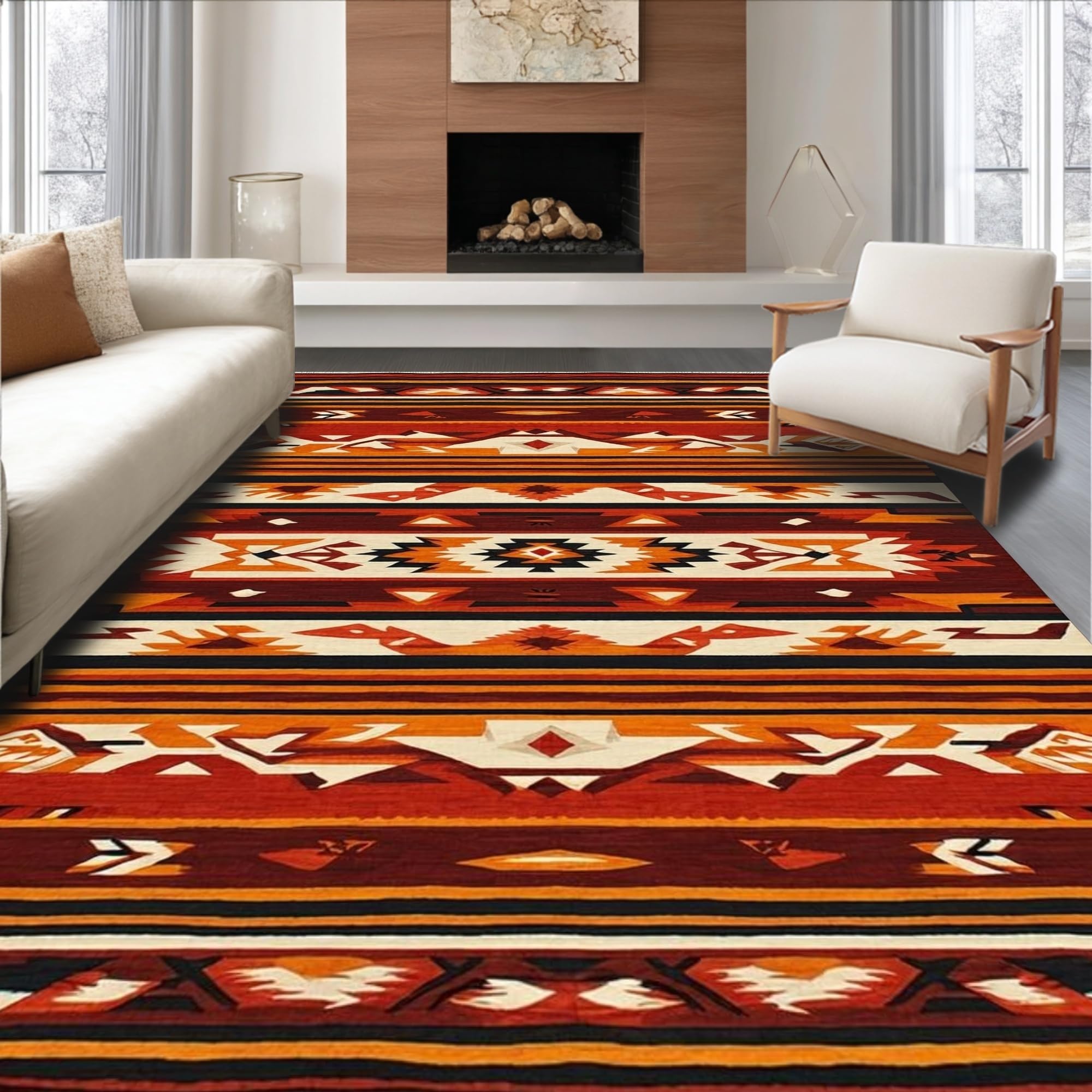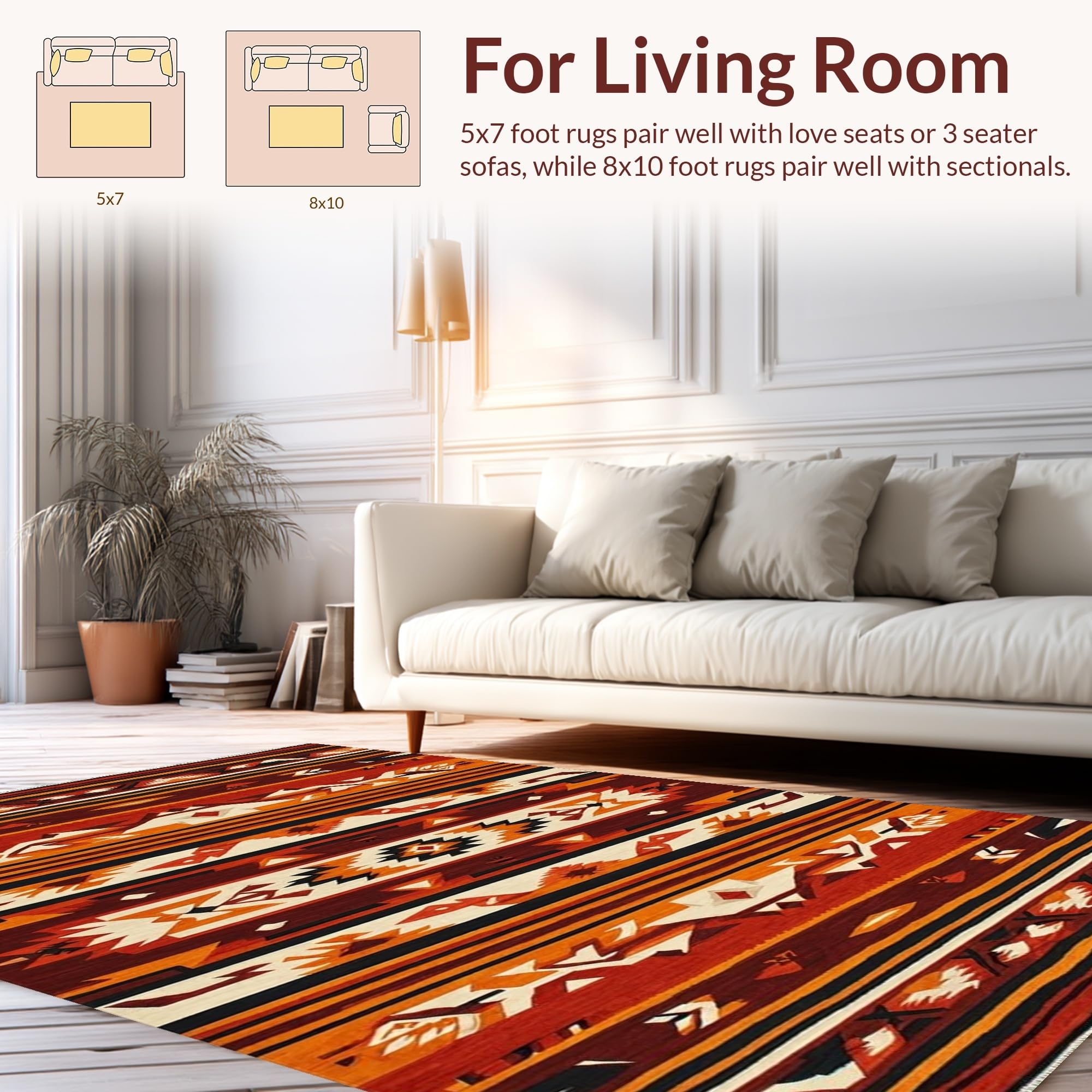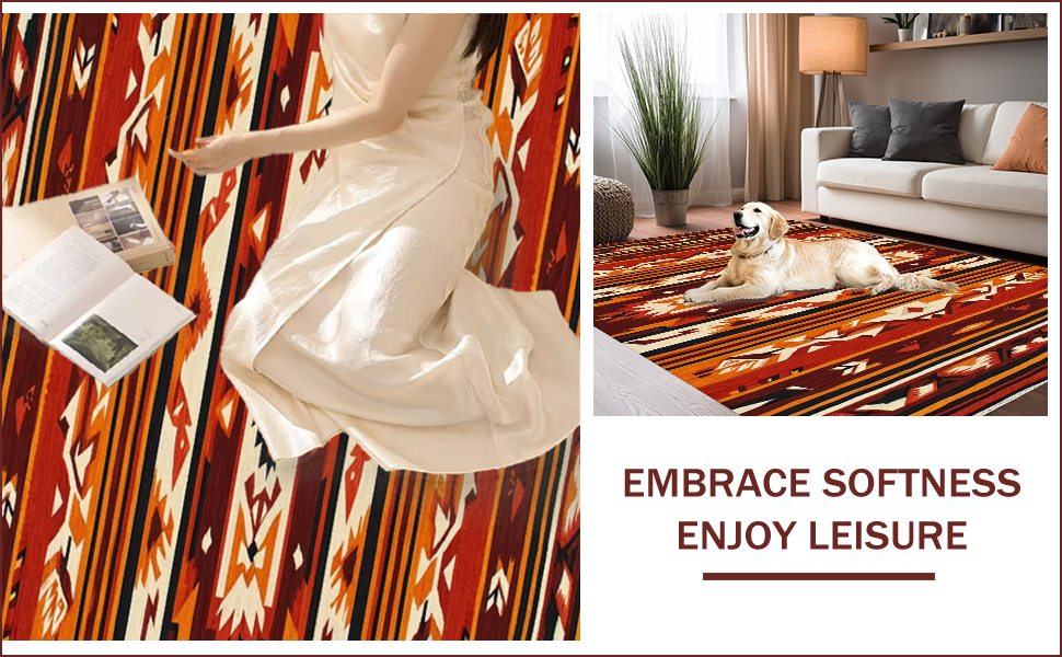 Ultra Soft Area Rug, Non Slip, Stain Resistant, Washable Area Rugs for Living Room, Bedroom, Bold Geometric Vintage Motif(Brown) Overview: