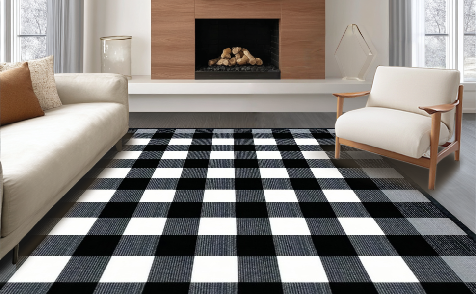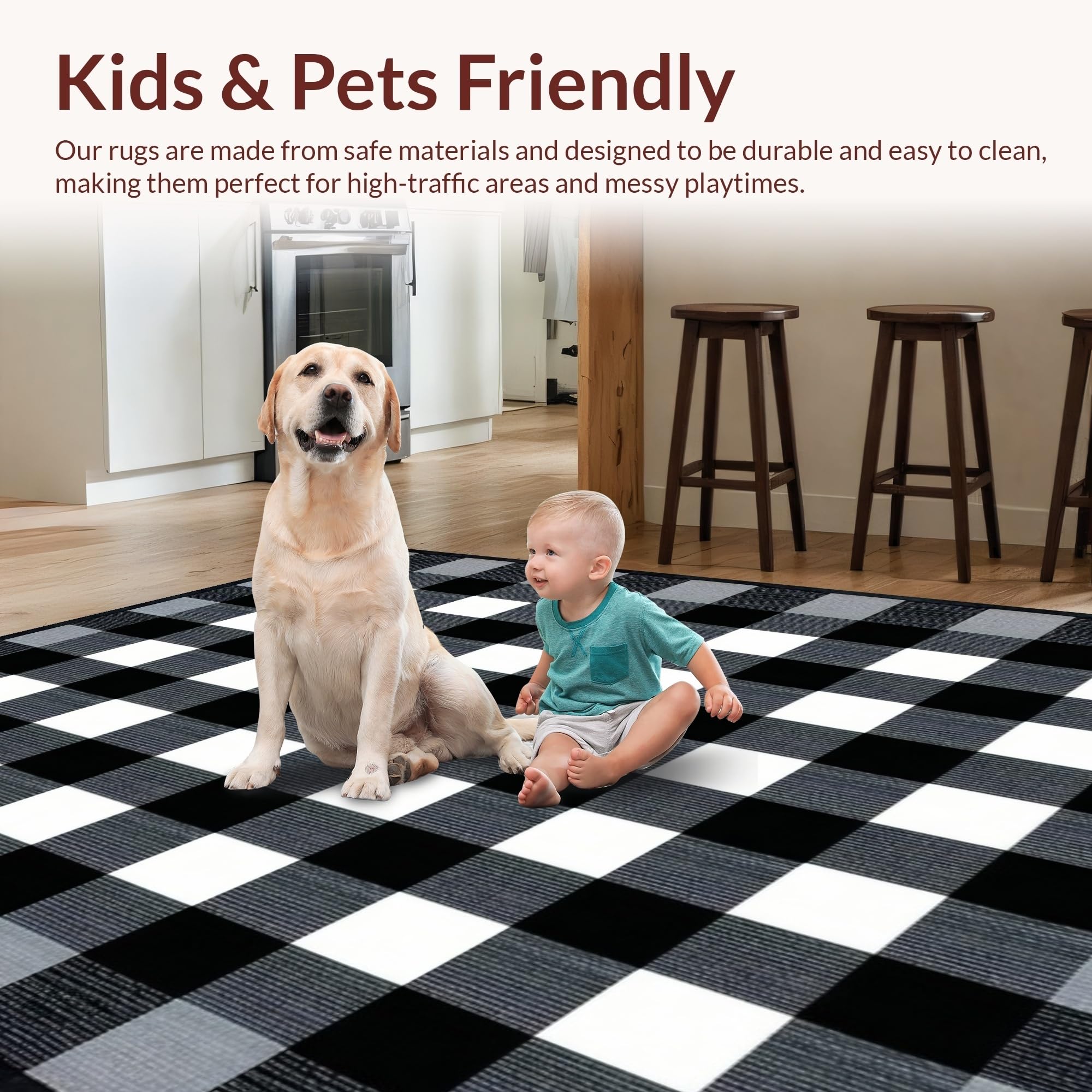 Ultra Soft Area Rug, Non Slip, Stain Resistant, Washable Area Rugs for Living Room, Bedroom, Bold Handcrafted Minimalist Graphic Design(Black) Overview: