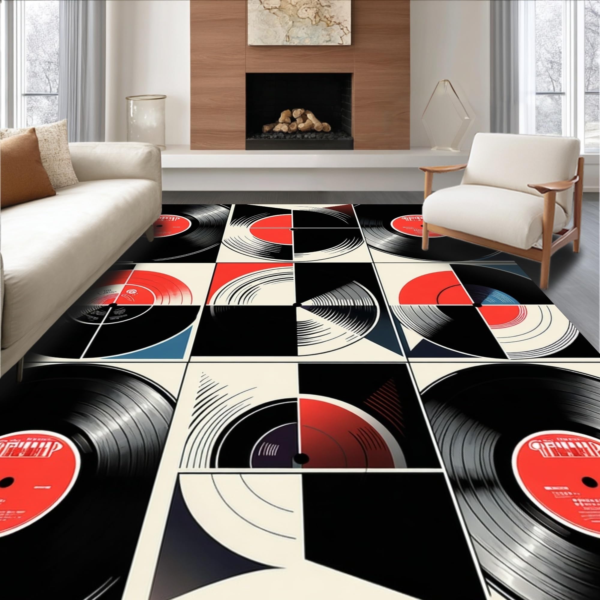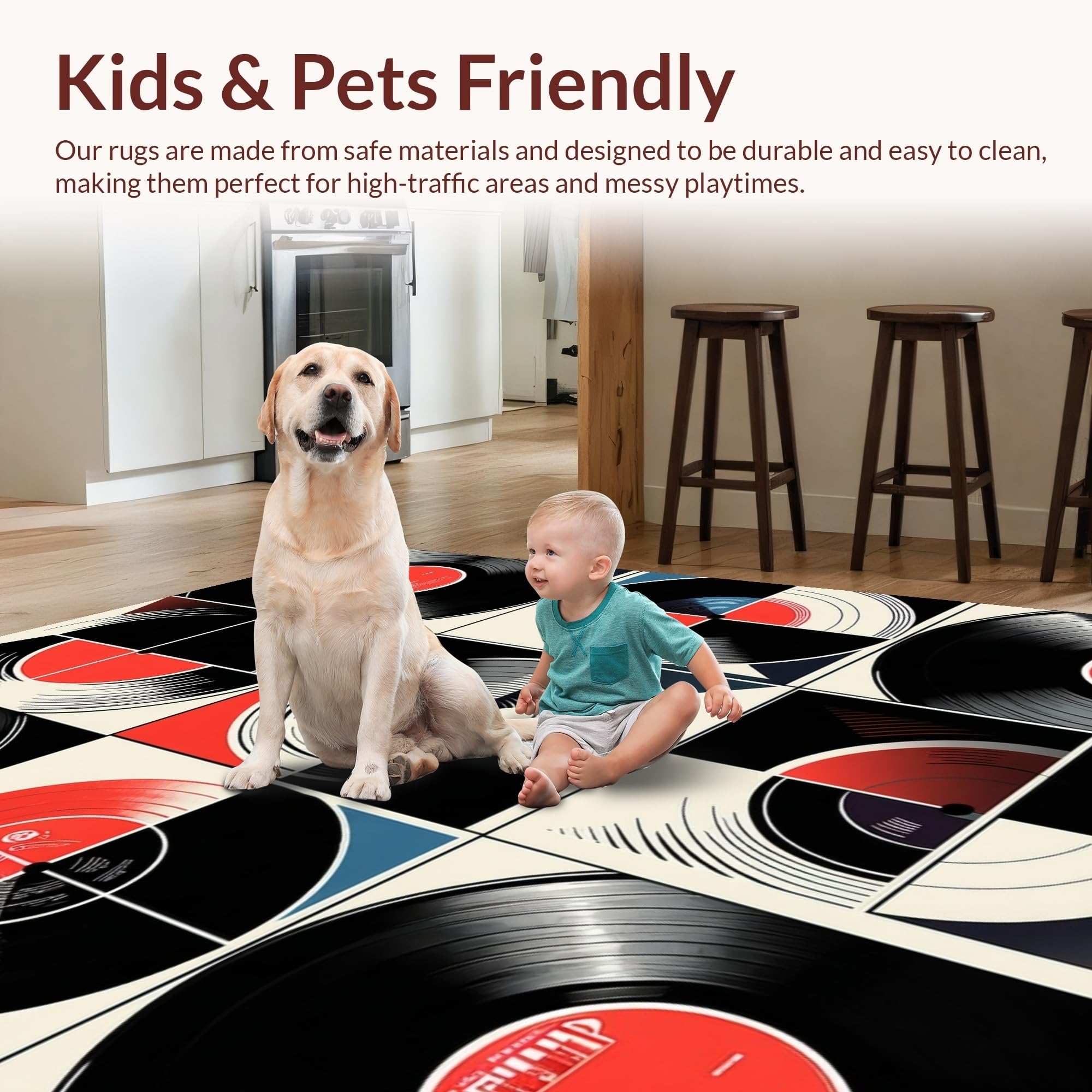 Ultra Soft Area Rug, Non Slip, Stain Resistant, Washable Area Rugs for Living Room, Bedroom, Bold Monochrome Circular Pattern(Black) Overview: