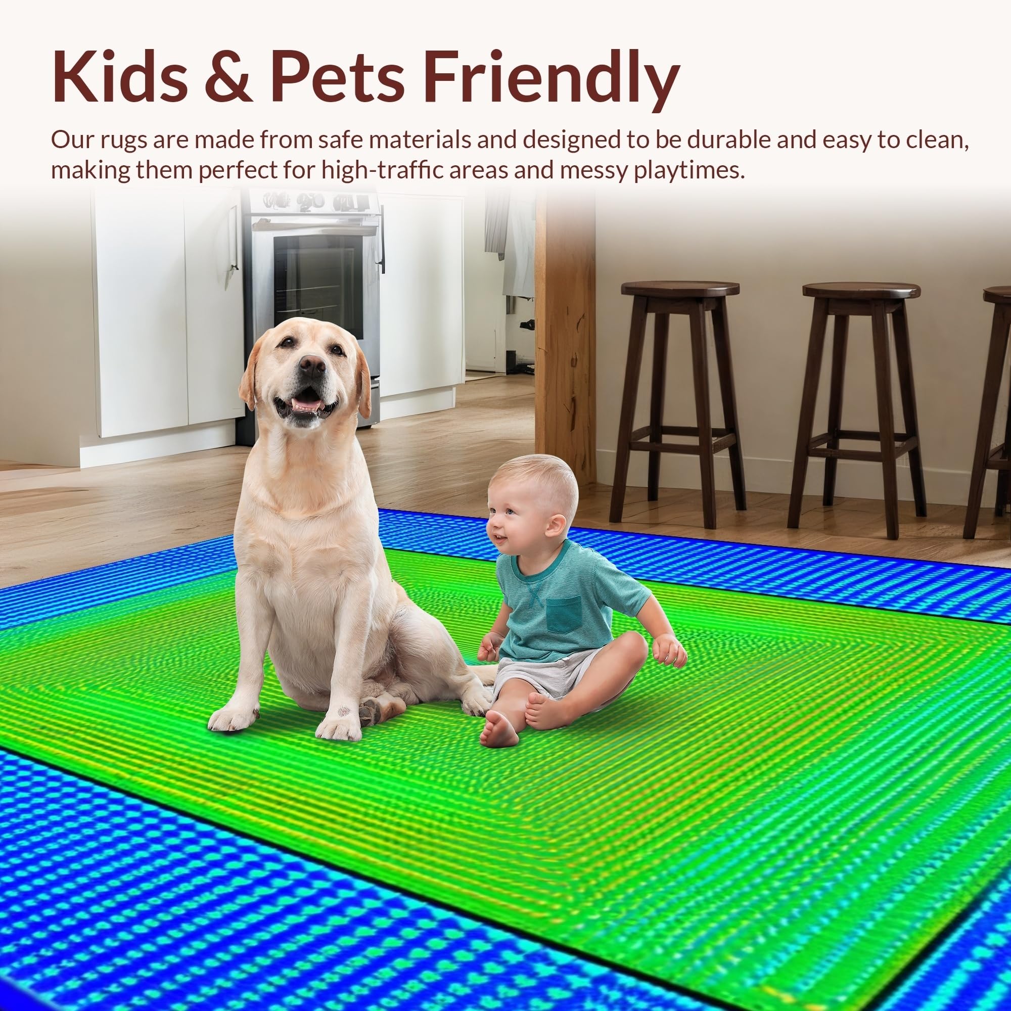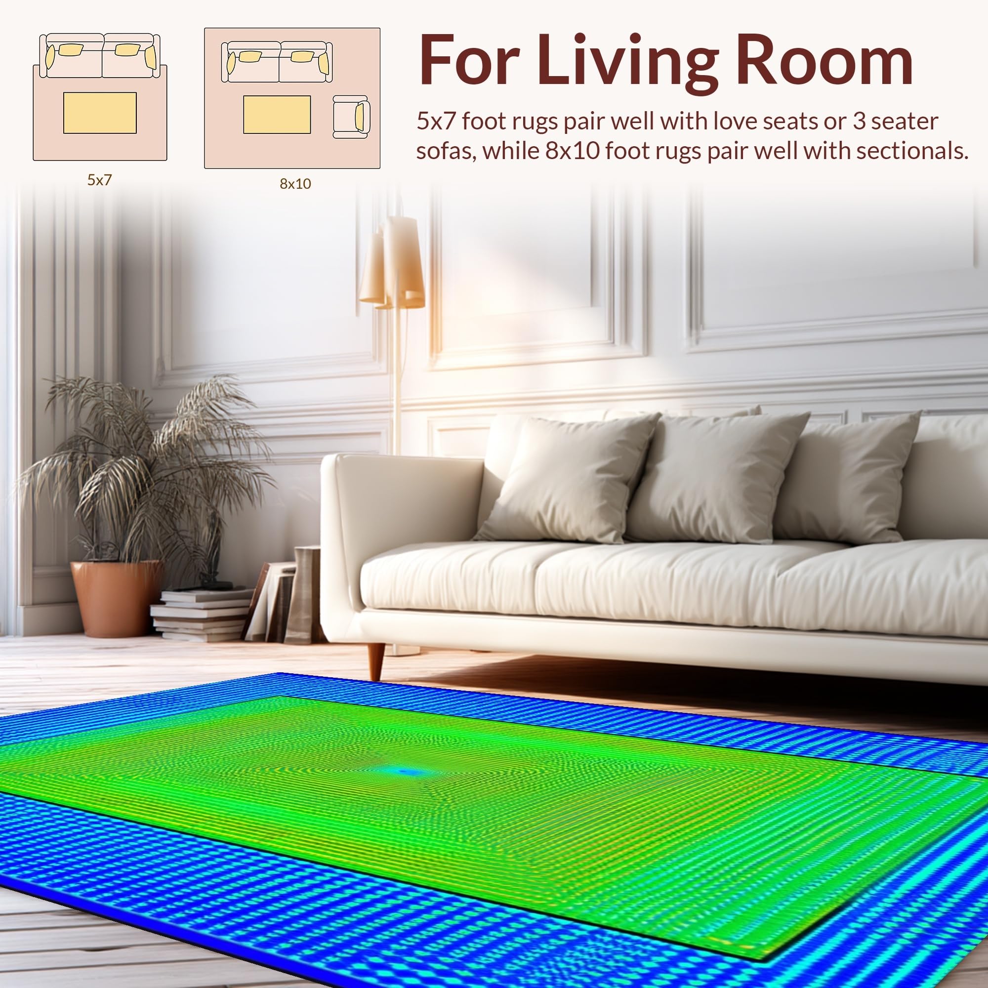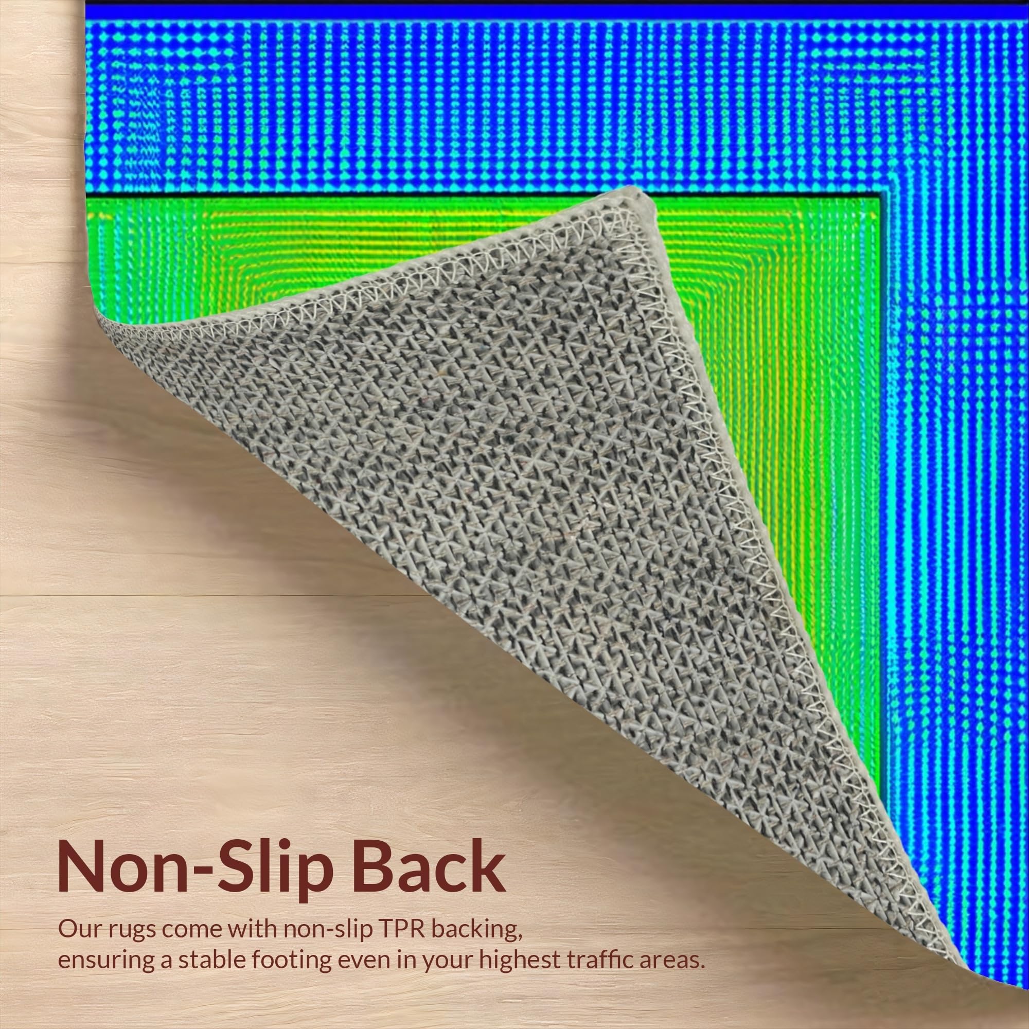 Ultra Soft Area Rug, Non Slip, Stain Resistant, Washable Area Rugs for Living Room, Bedroom, Bold Multicolored Vortex Artwork(Blue) Overview:
