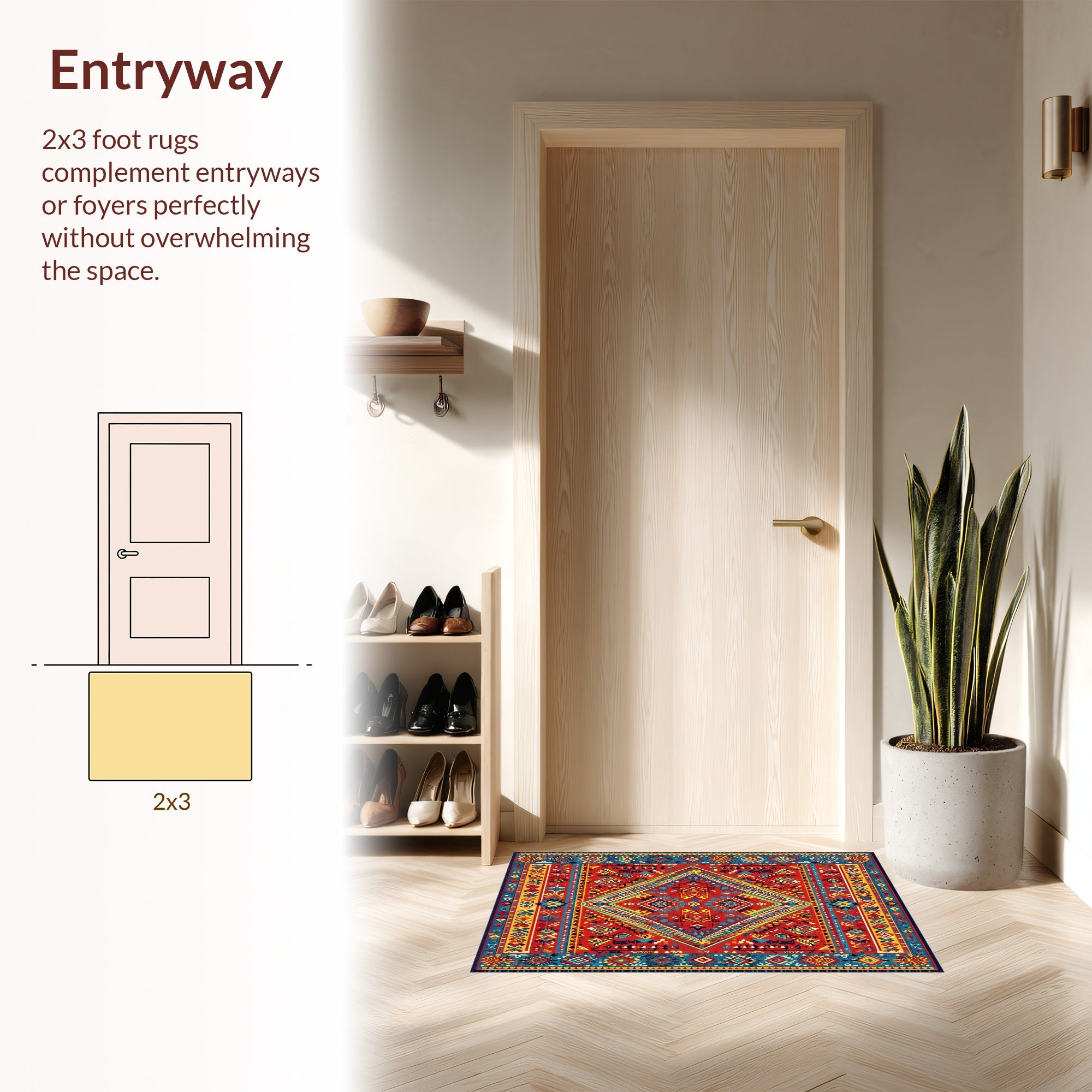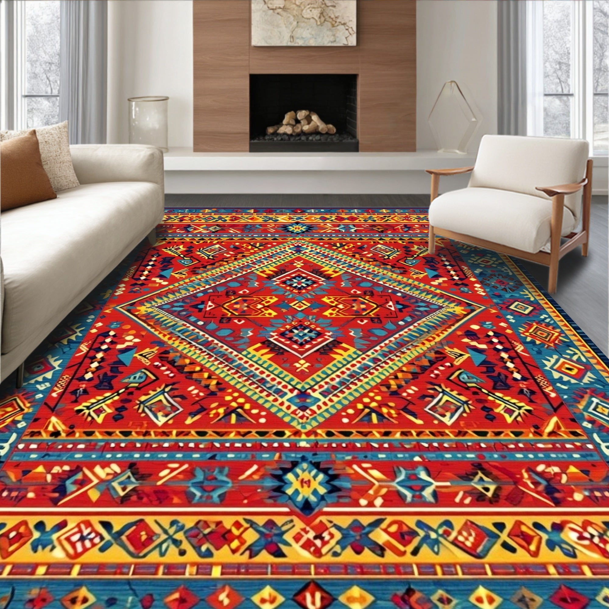 Flatwoven High Traffic Area Rug, Bold Multicolored Design, Non Slip, Stain Resistant, Washable Area Rugs for Living Room, Bedroom (Red) Overview: