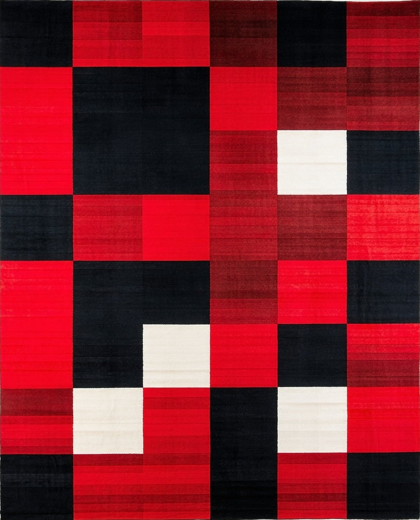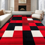 Flatwoven High Traffic Area Rug, Bold and Black Checkerboard Motif, Non Slip, Stain Resistant, Washable Area Rugs for Living Room, Bedroom (Red) Overview: