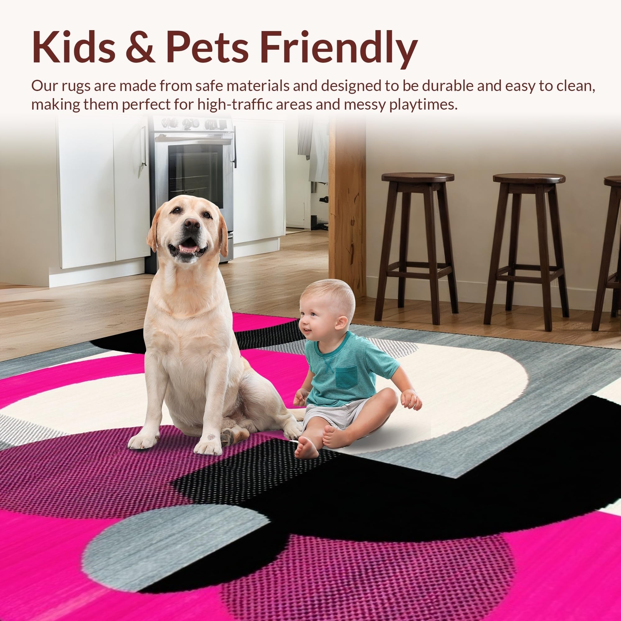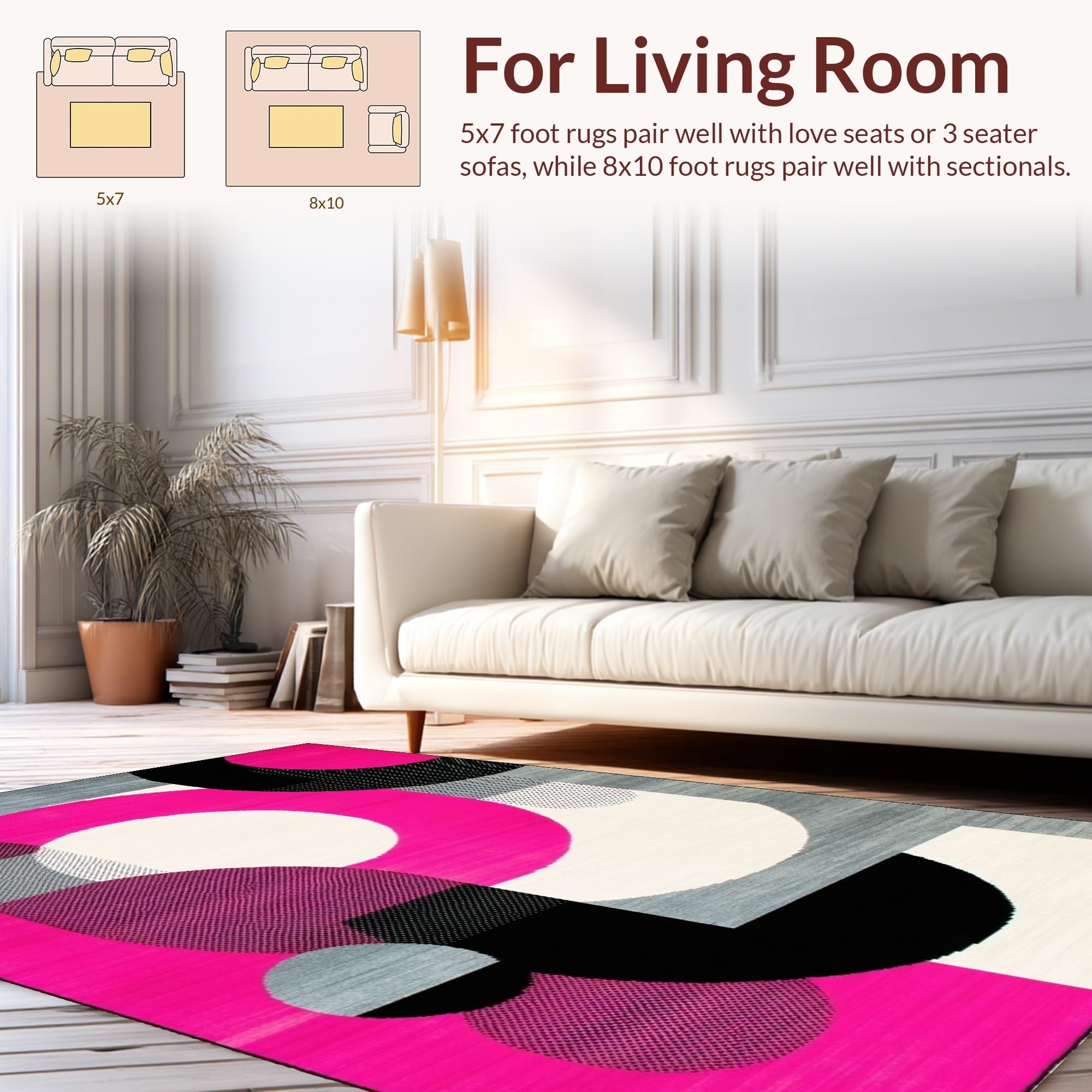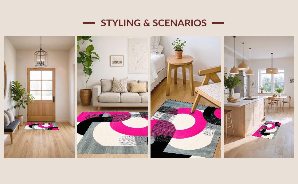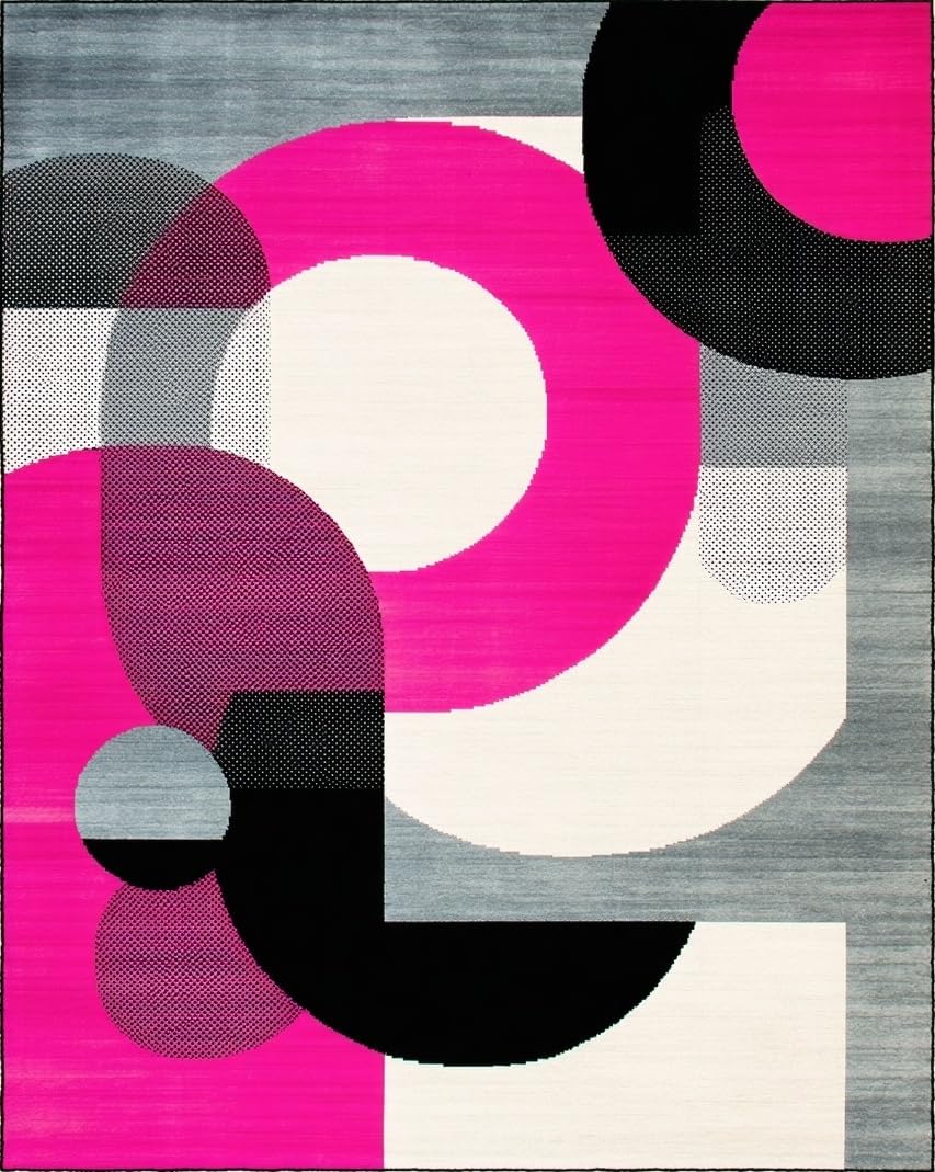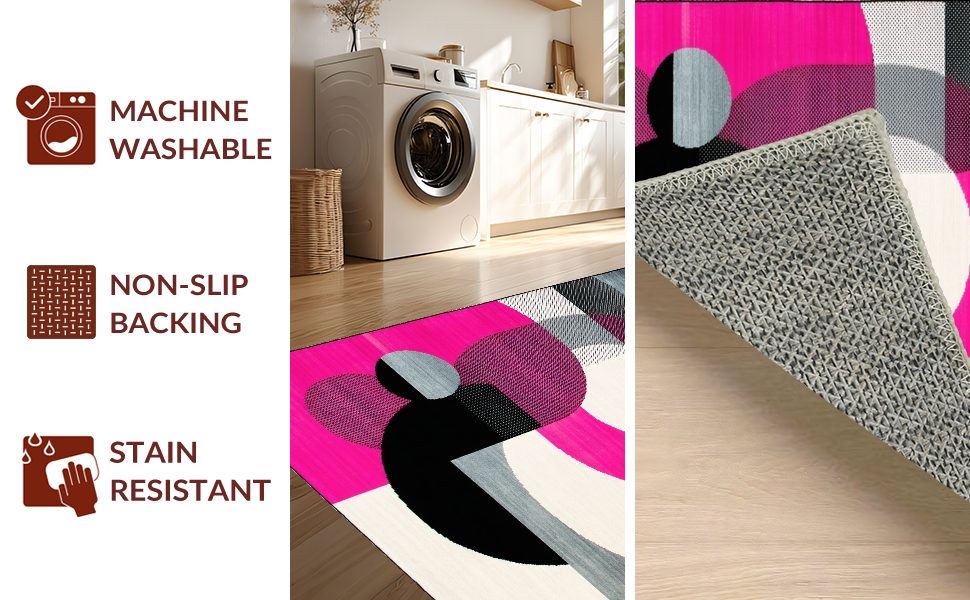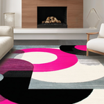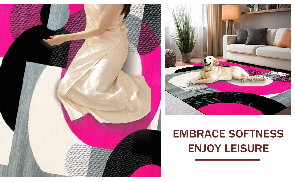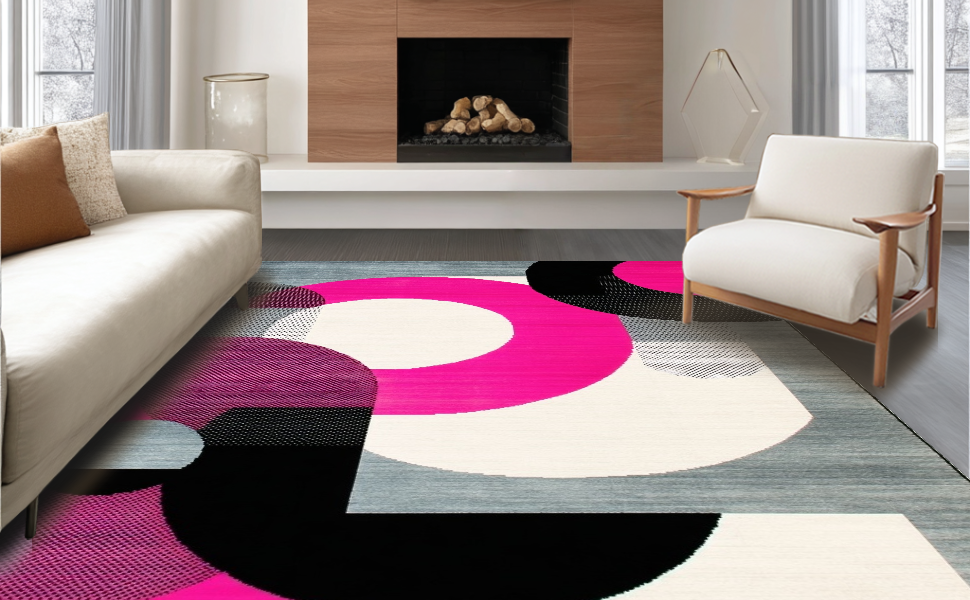 Ultra Soft Area Rug, Non Slip, Stain Resistant, Washable Area Rugs for Living Room, Bedroom, Bold Retro Circular Geometry Palette(Pink) Overview: