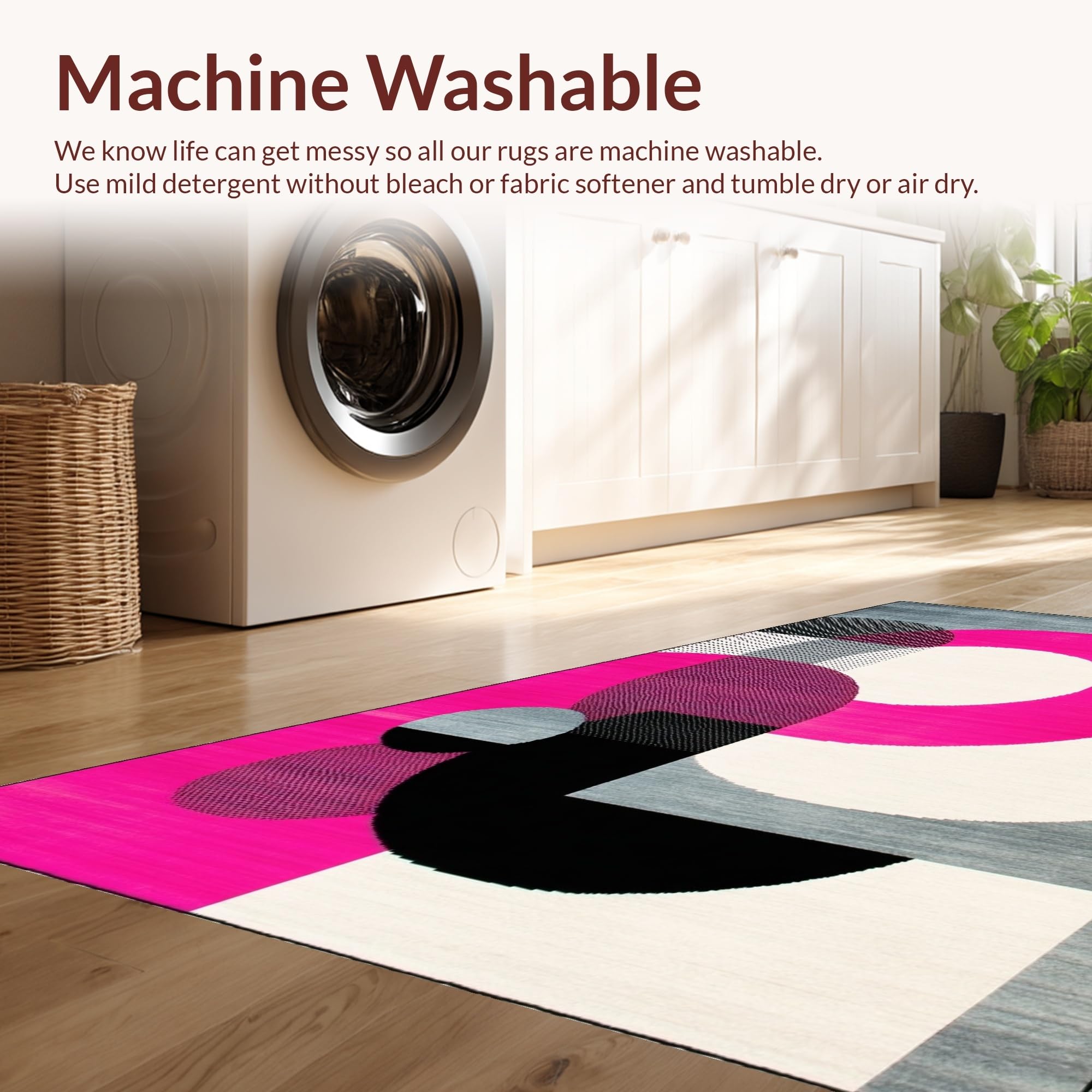 - Machine Washable: Our rugs can be easily thrown in the wash machine.