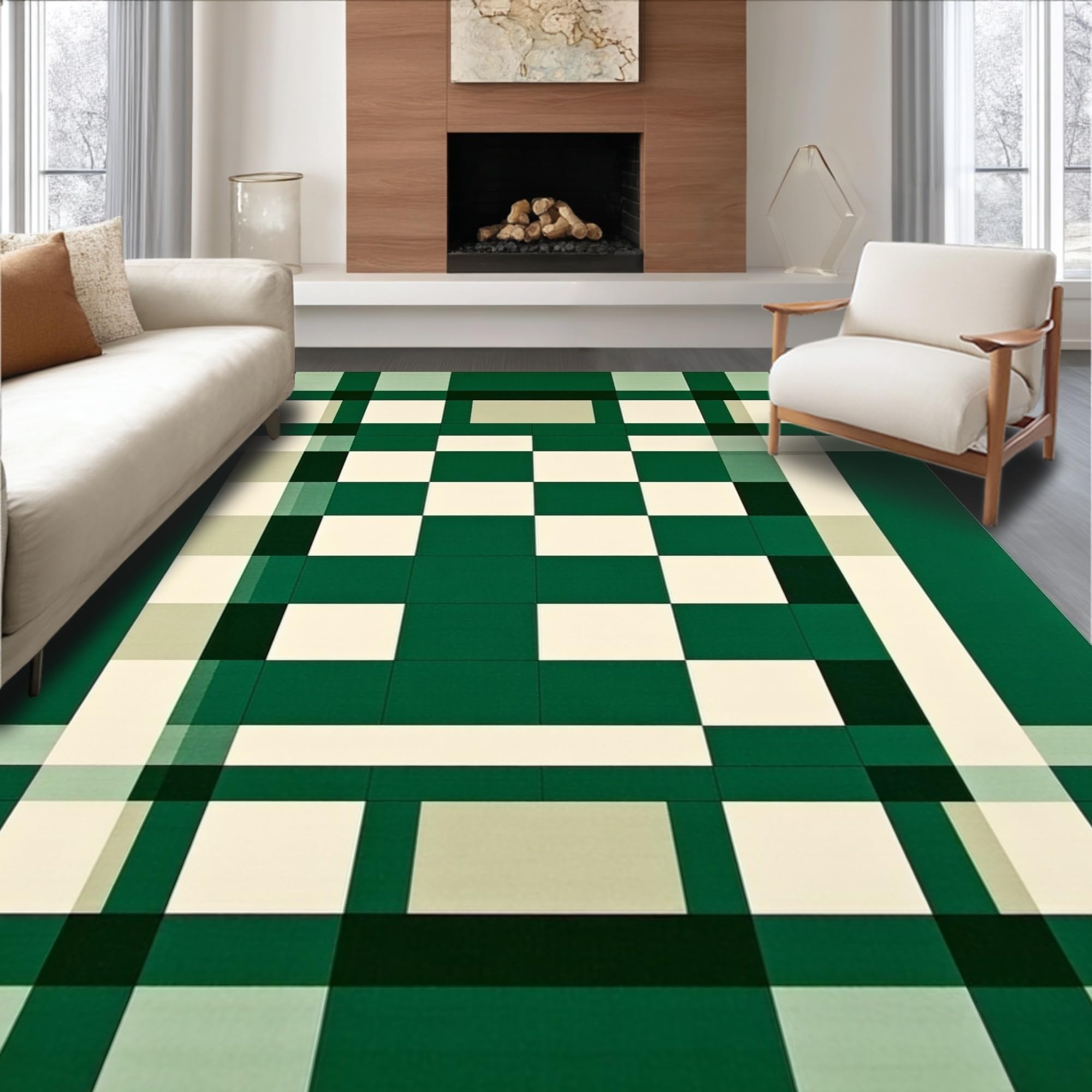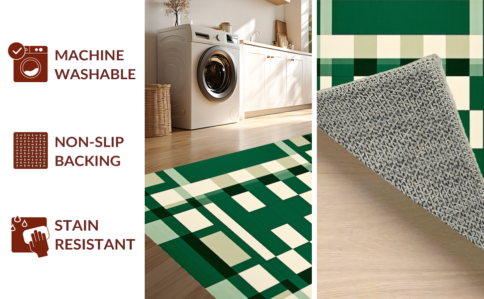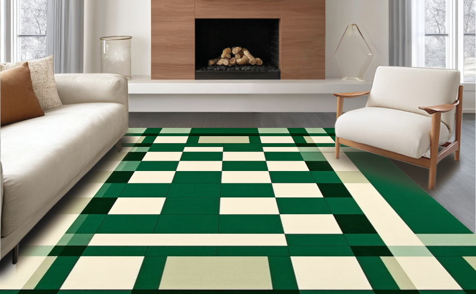 Ultra Soft Area Rug, Non Slip, Stain Resistant, Washable Area Rugs for Living Room, Bedroom, Bold Rustic Striped Composition(Green) Overview: