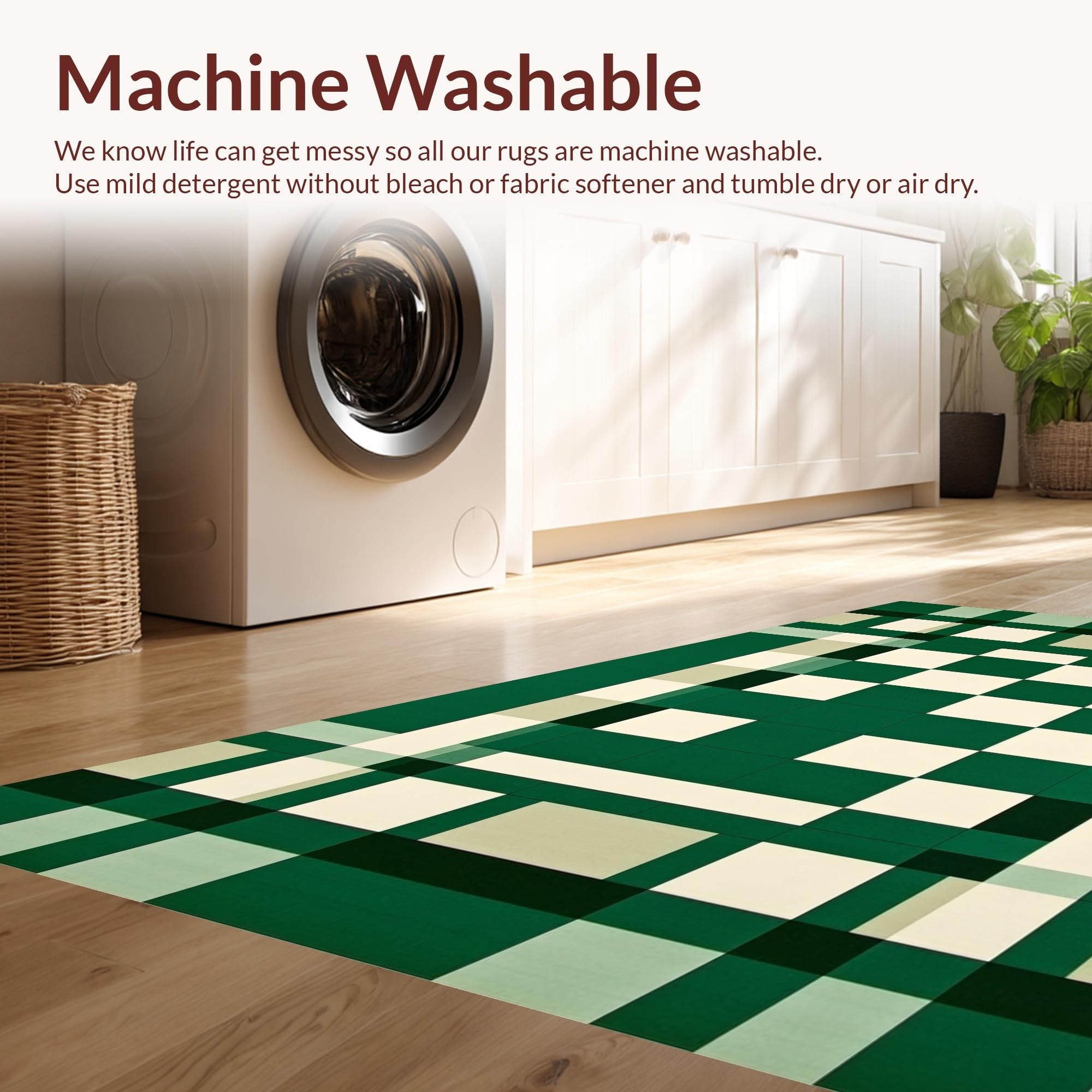 - Machine Washable: Our rugs can be easily thrown in the wash machine.