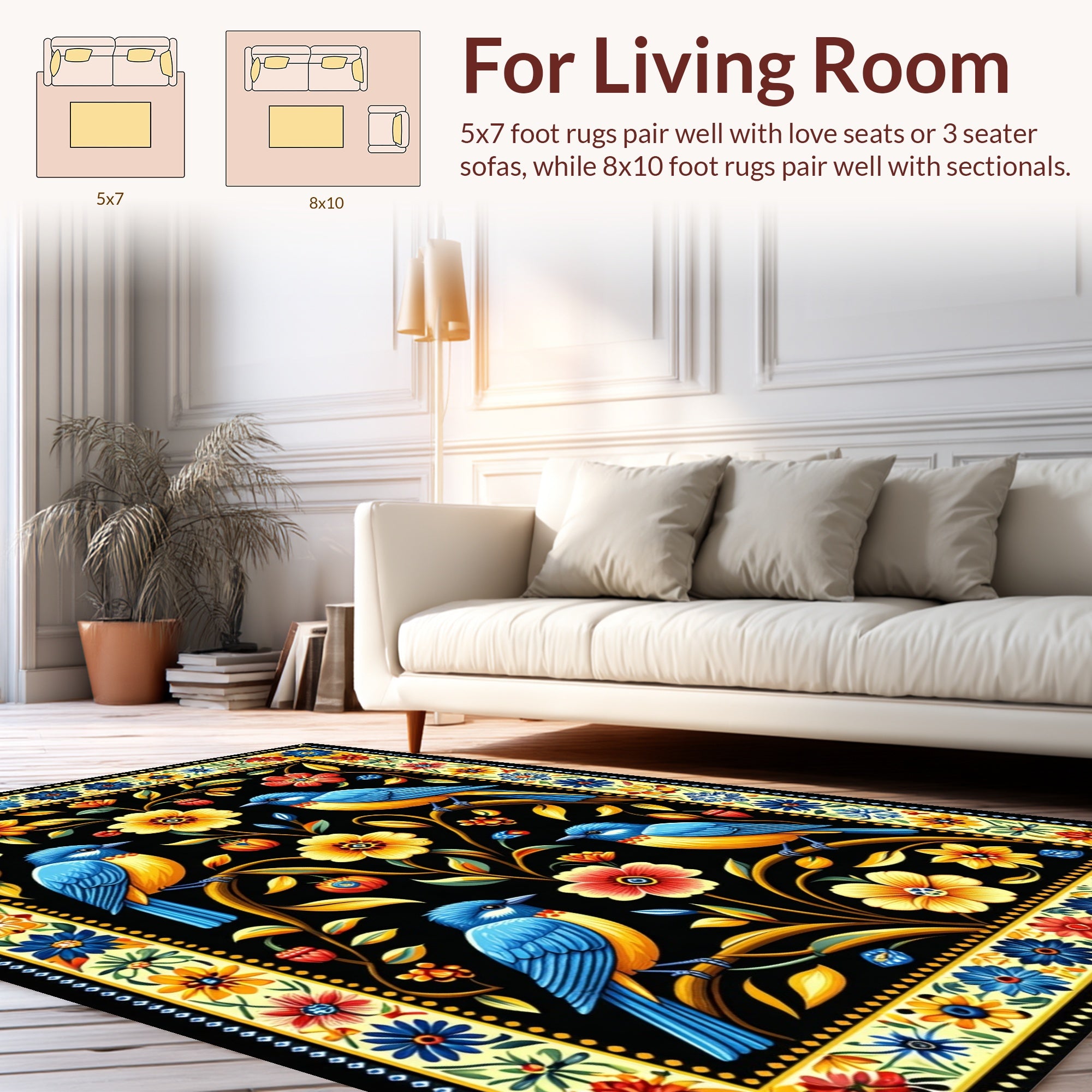 Flatwoven High Traffic Area Rug, Bold Vibrant Art, Non Slip, Stain Resistant, Washable Area Rugs for Living Room, Bedroom (Black) Overview: