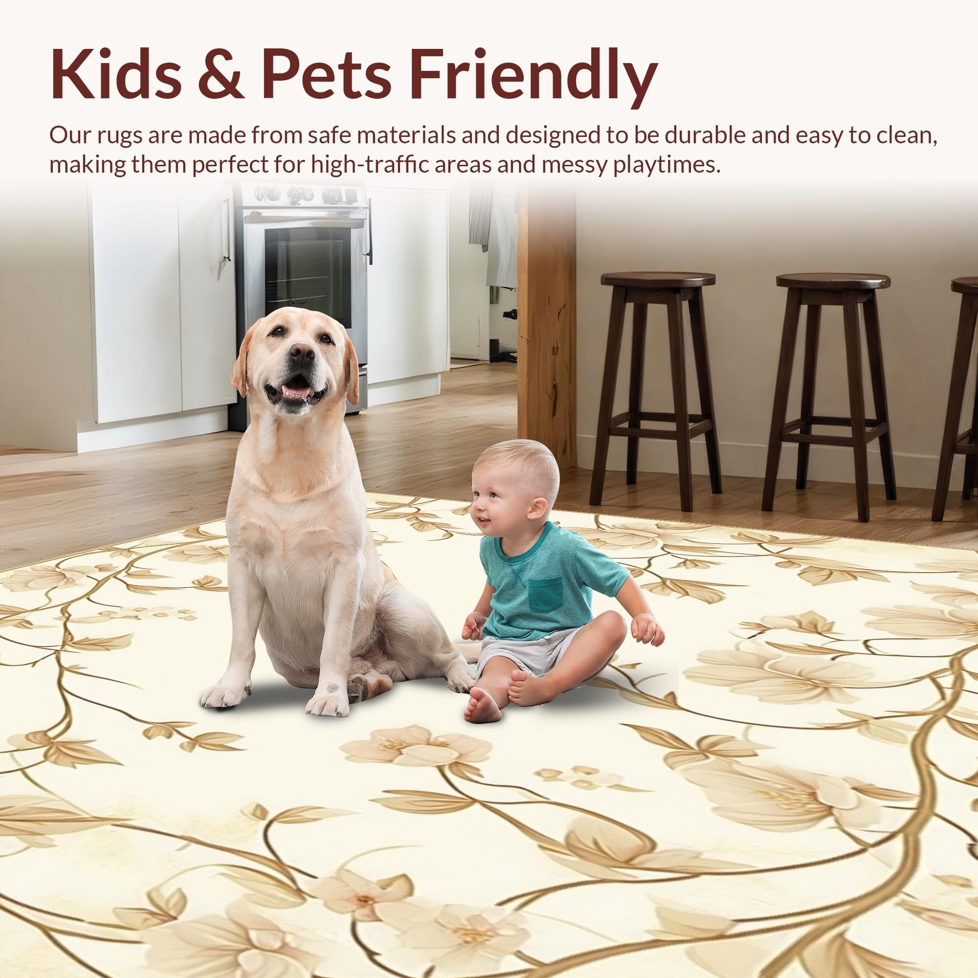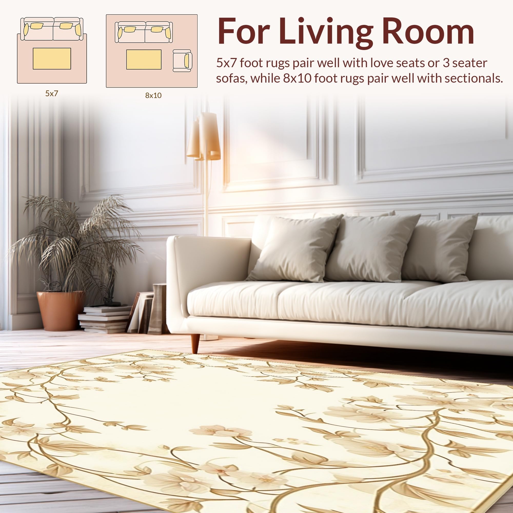 Ultra Soft Area Rug, Non Slip, Stain Resistant, Washable Area Rugs for Living Room, Bedroom, Botanical Bliss Entrance Beige Floral Non Slip Boho Decor(Beige) Overview: