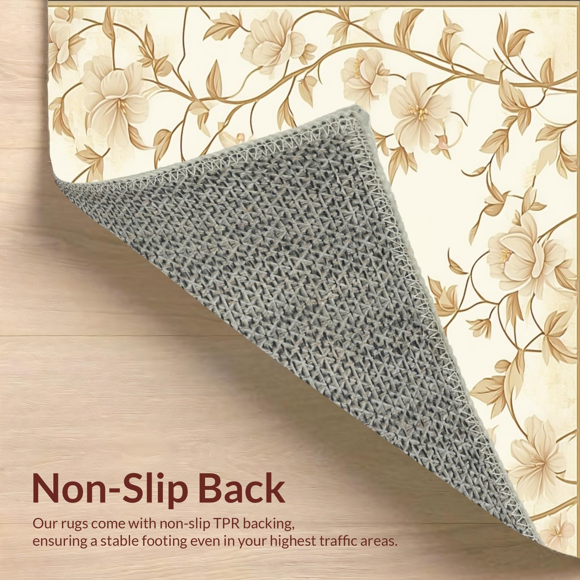 Botanical Bliss Entrance Beige Floral Non Slip Boho Decor(Beige)
