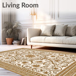 Ultra Soft Area Rug, Non Slip, Stain Resistant, Washable Area Rugs for Living Room, Bedroom, Botanical Damask Scrollwork Elegant Heritage Design(Beige) Overview: