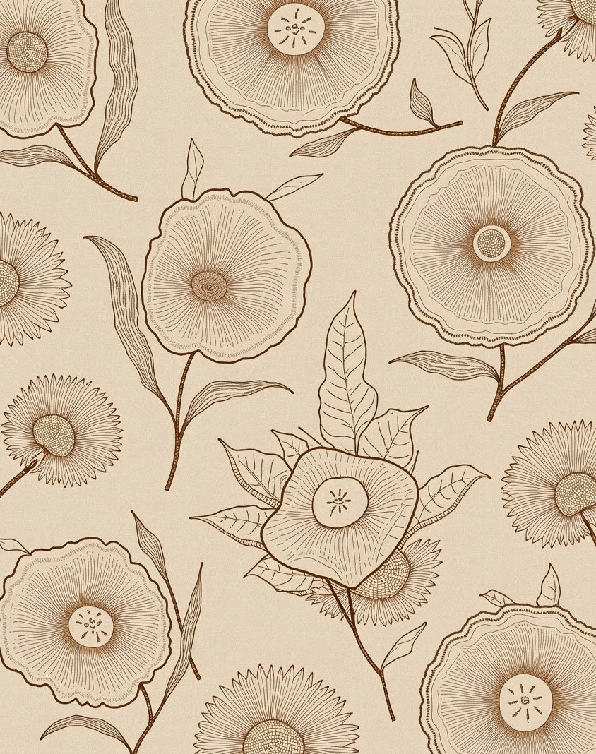 Botanical Distressed Floral Symmetrical(Beige)