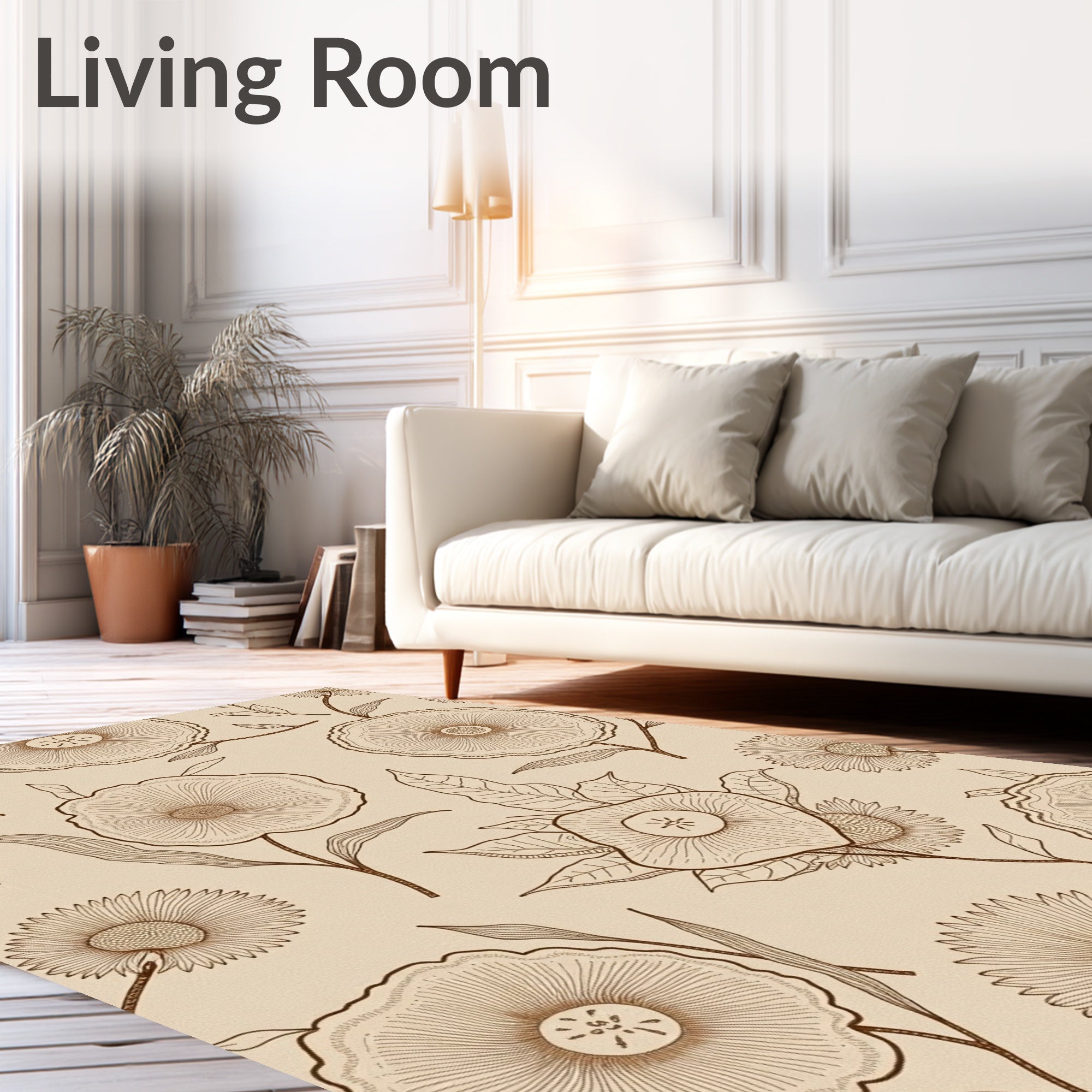 Ultra Soft Area Rug, Non Slip, Stain Resistant, Washable Area Rugs for Living Room, Bedroom, Botanical Distressed Floral Symmetrical(Beige) Overview:
