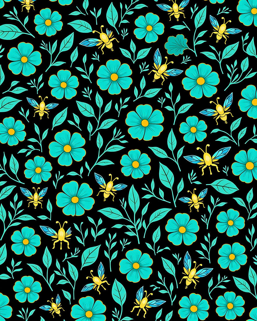 Botanical Enchanted Meadow Insect Floral Decorative(Black)