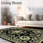 Ultra Soft Area Rug, Non Slip, Stain Resistant, Washable Area Rugs for Living Room, Bedroom, Botanical Fern Interlocking Medallion With Elegant Holiday Flourish(Black) Overview: