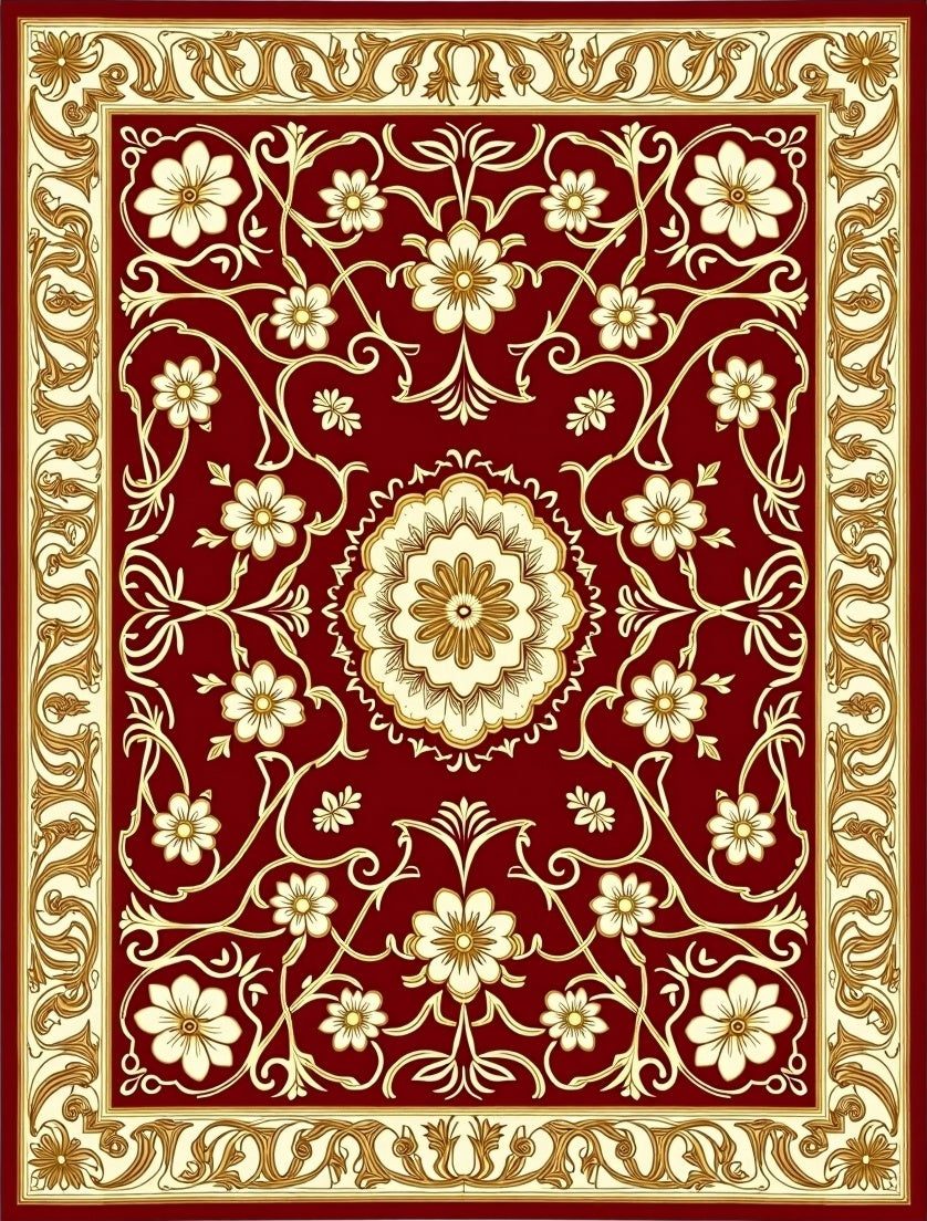 Botanical Floral Symmetrical Interwoven Decorative(Red)
