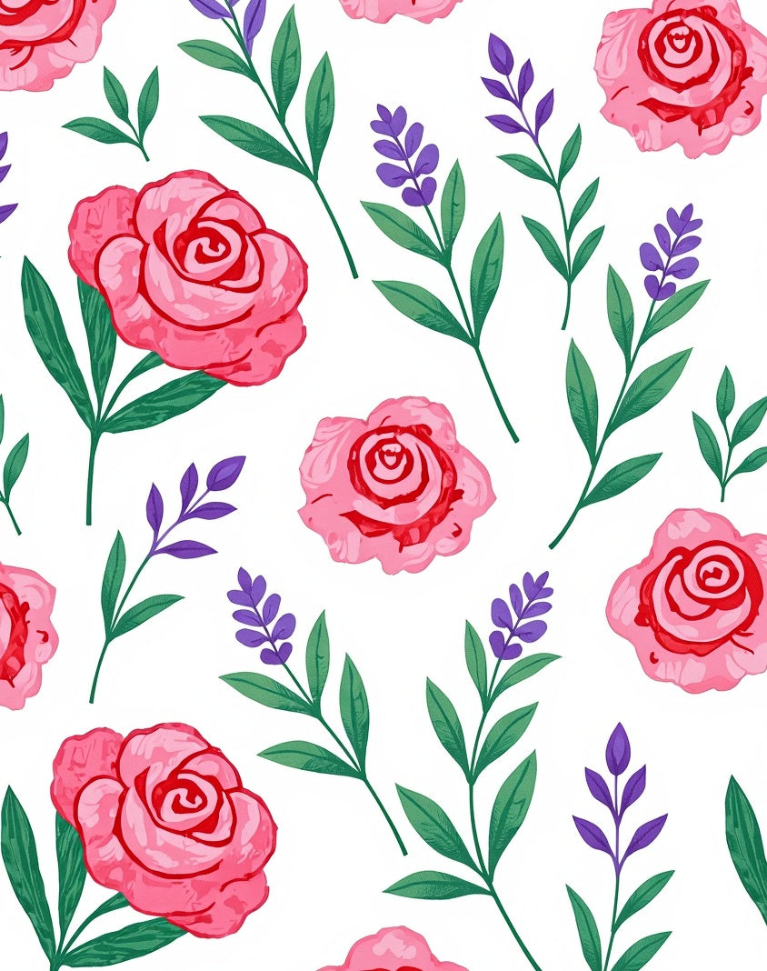 Botanical Garden Flower Design Low Pile with Anti Slip Base(Pink)
