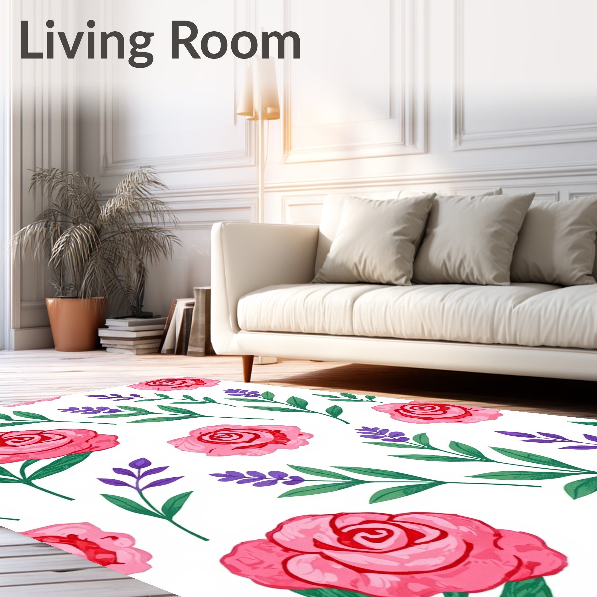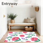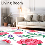 Ultra Soft Area Rug, Non Slip, Stain Resistant, Washable Area Rugs for Living Room, Bedroom, Botanical Garden Flower Design Low Pile with Anti Slip Base(Pink) Overview: