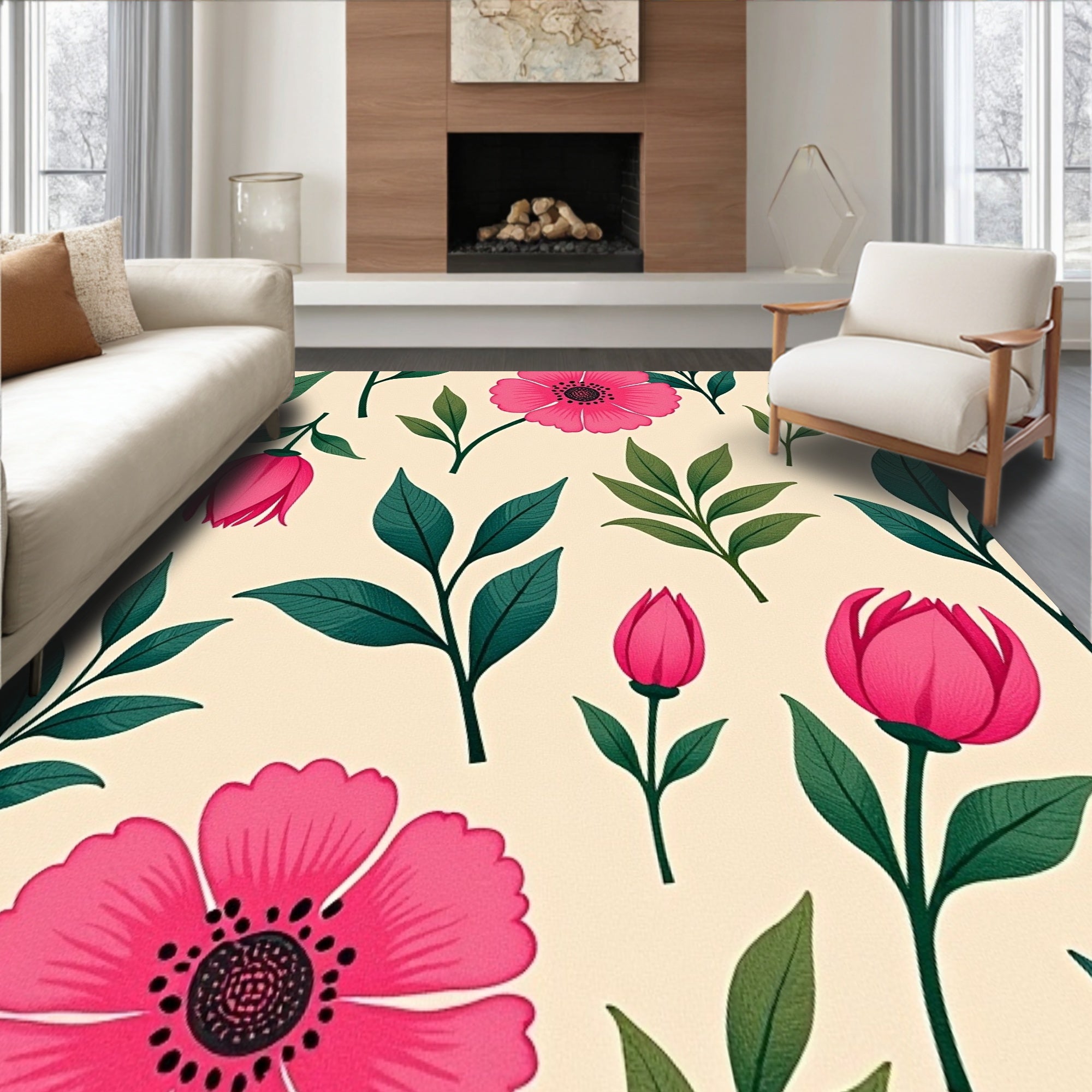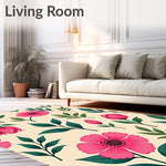 Ultra Soft Area Rug, Non Slip, Stain Resistant, Washable Area Rugs for Living Room, Bedroom, Botanical Garden Heirloom Jewel Toned Artistic Statement(Pink) Overview: