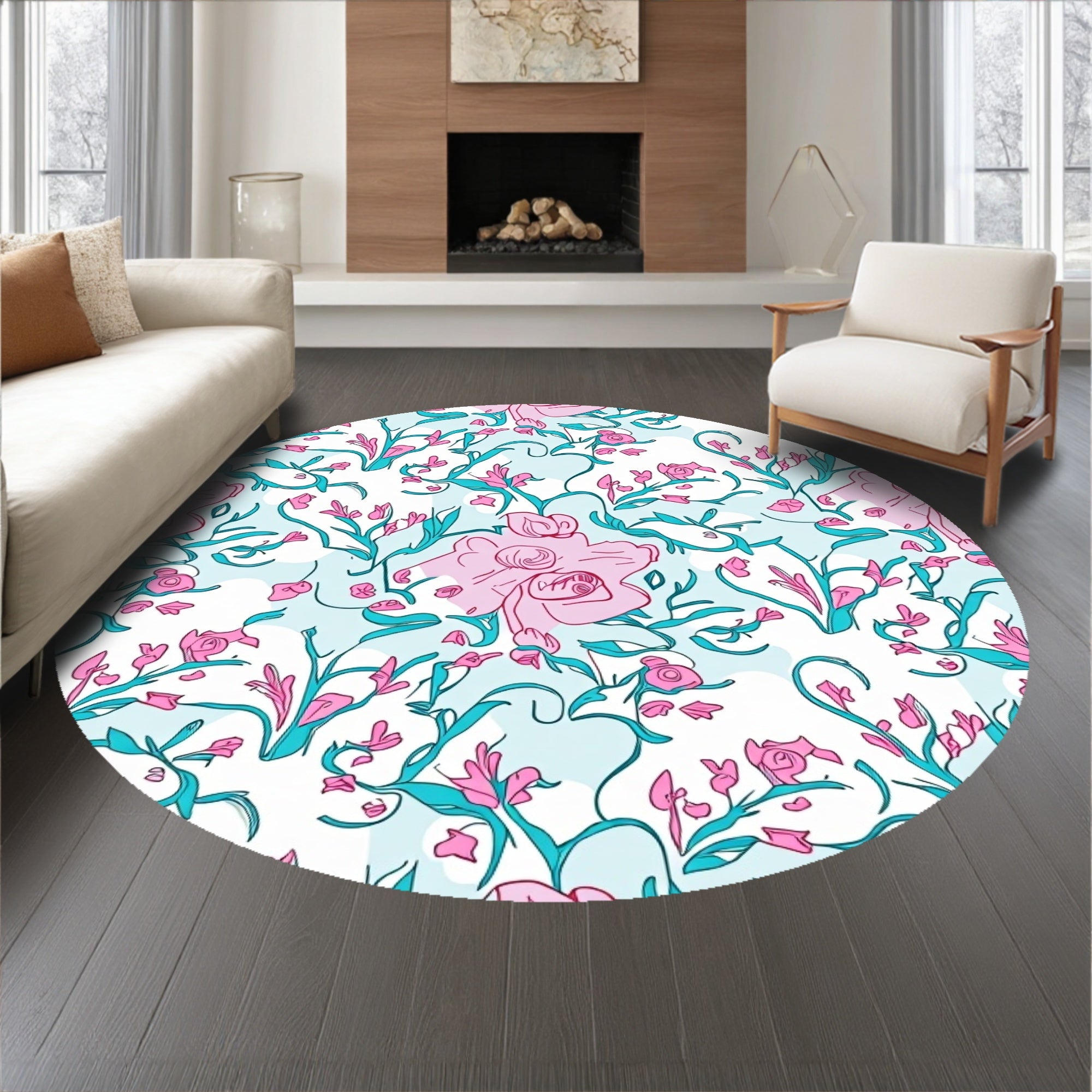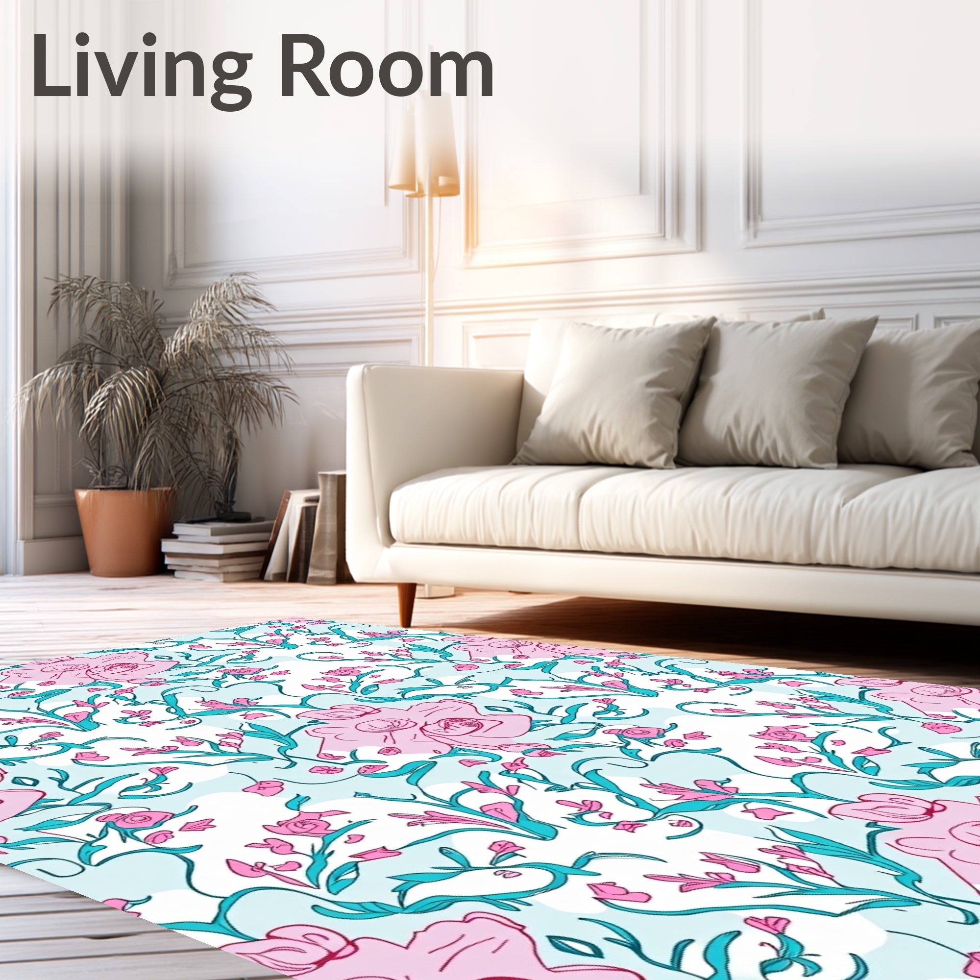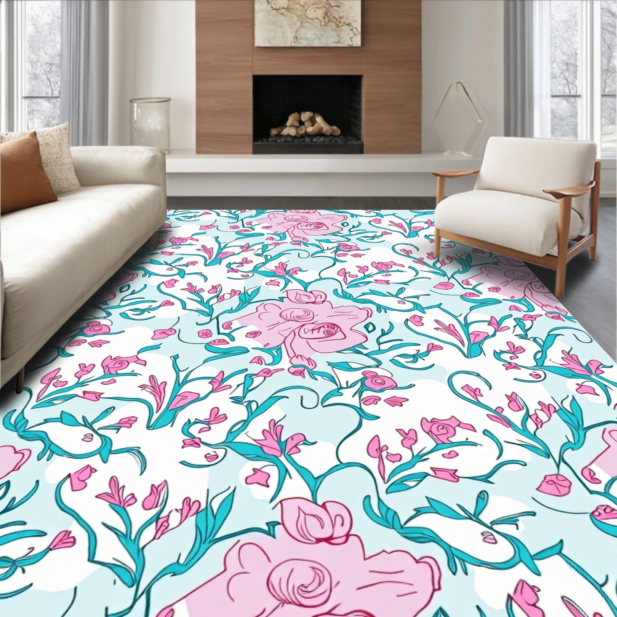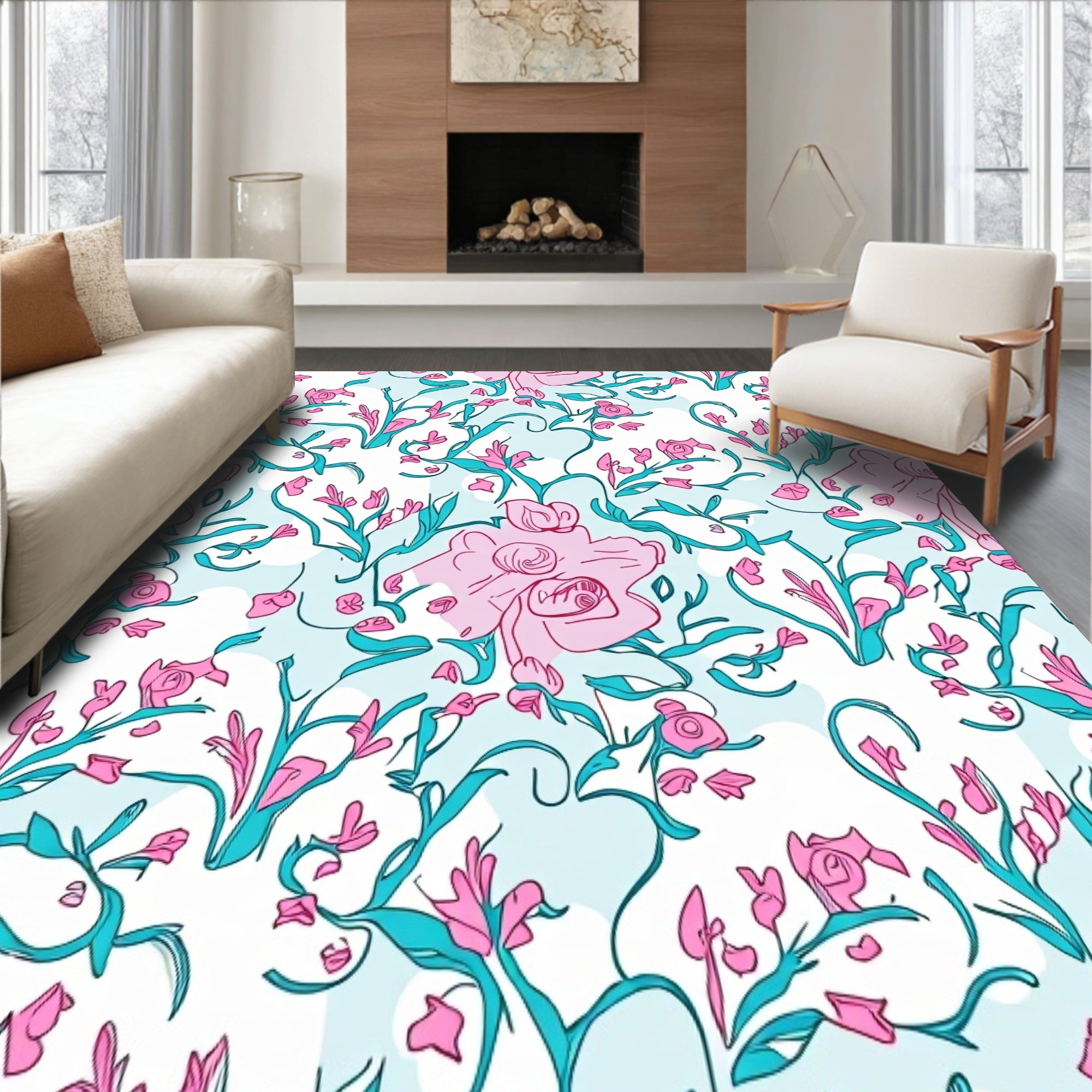 Ultra Soft Area Rug, Non Slip, Stain Resistant, Washable Area Rugs for Living Room, Bedroom, Botanical Garden Trellis with Climbing Rose Vines(Pink) Overview: