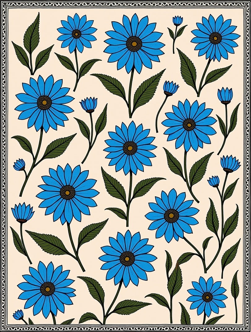 Botanical Heritage Tapestry Featuring Exotic Bloom Arrangement(Blue)