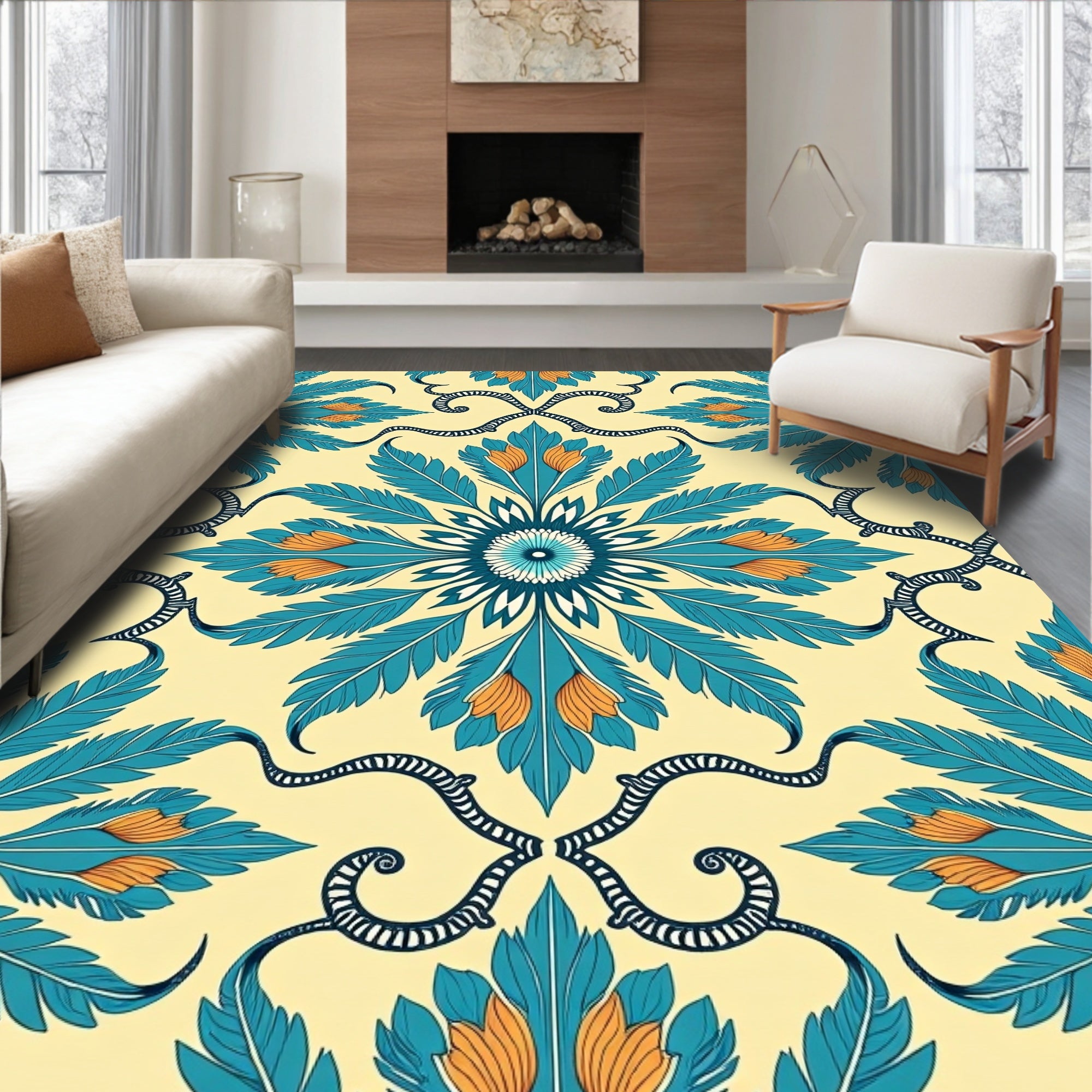 Ultra Soft Area Rug, Non Slip, Stain Resistant, Washable Area Rugs for Living Room, Bedroom, Botanical Leaf Tapestry Medallion(Beige) Overview:
