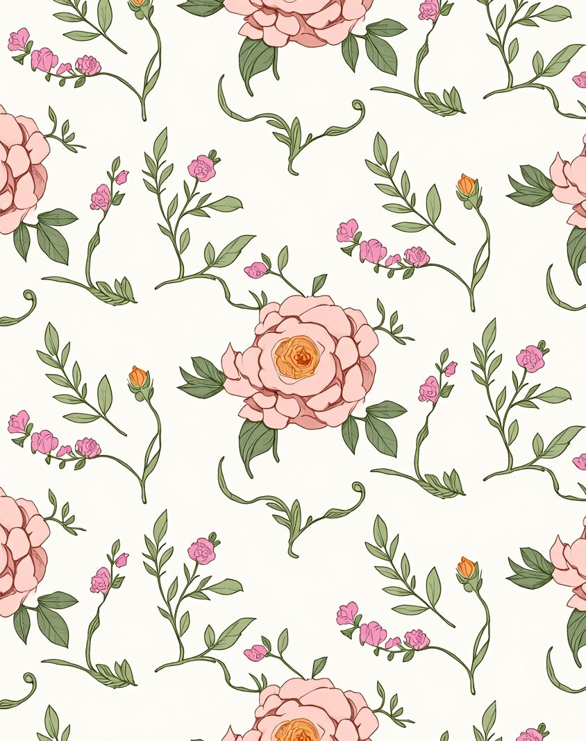 Botanical Medallion Featuring Delicate Floral Motifs(Pink)