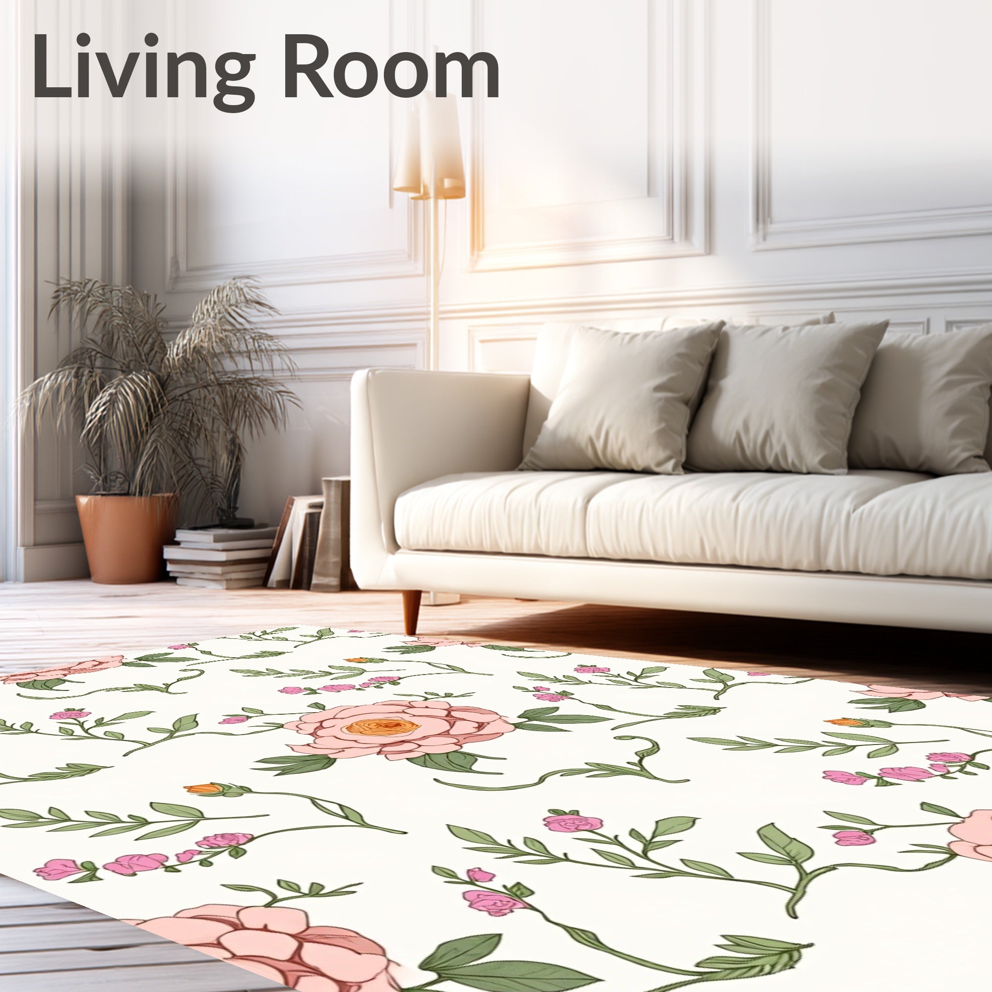 Flatwoven High Traffic Area Rug, Botanical Medallion Featuring Delicate Floral Motifs, Non Slip, Stain Resistant, Washable Area Rugs for Living Room, Bedroom (Pink) Overview: