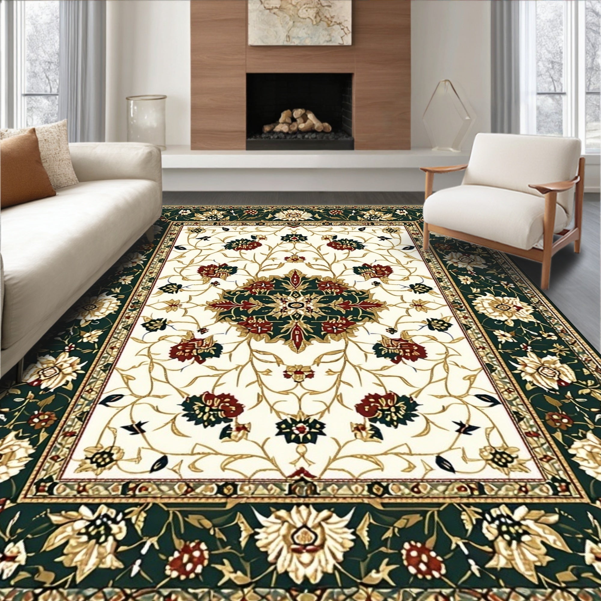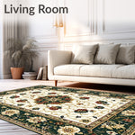 Flatwoven High Traffic Area Rug, Botanical Print Nature Canvas, Non Slip, Stain Resistant, Washable Area Rugs for Living Room, Bedroom (Green) Overview: