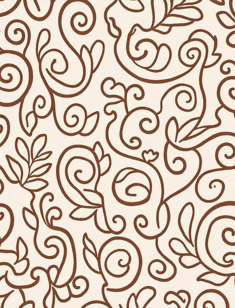 Botanical Vine Scroll with Tendril(Brown)