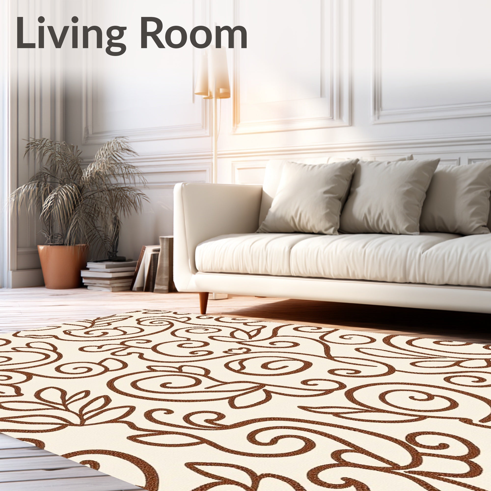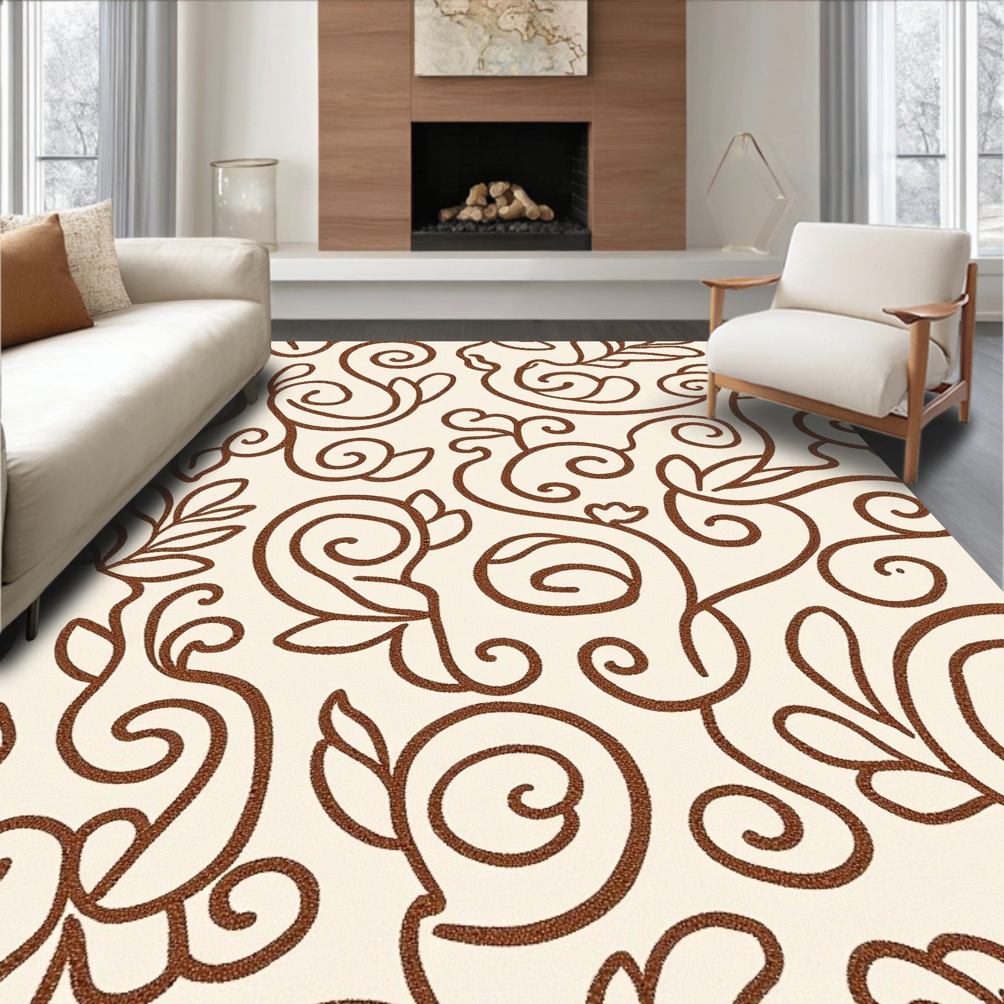 Flatwoven High Traffic Area Rug, Botanical Vine Scroll with Tendril, Non Slip, Stain Resistant, Washable Area Rugs for Living Room, Bedroom (Brown) Overview: