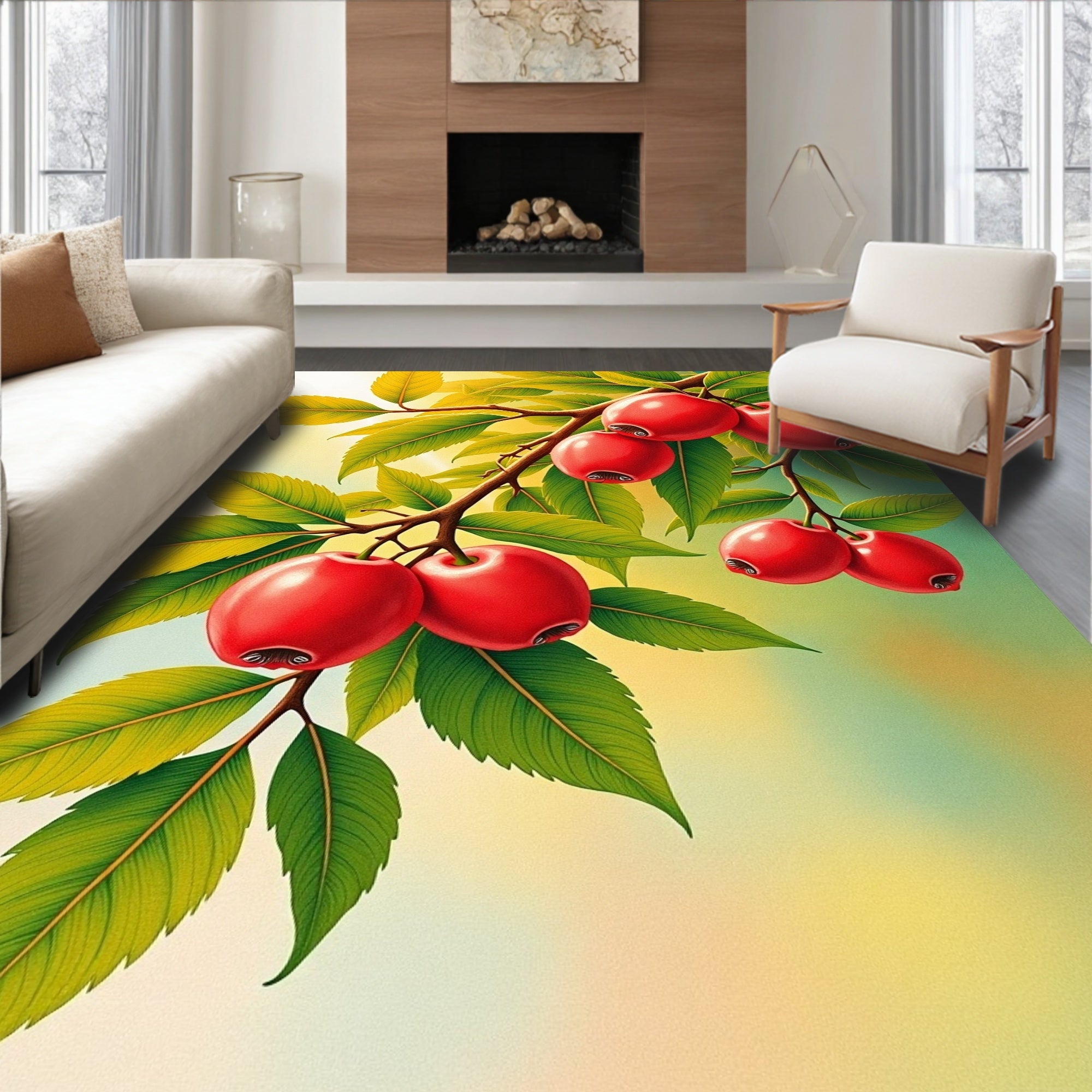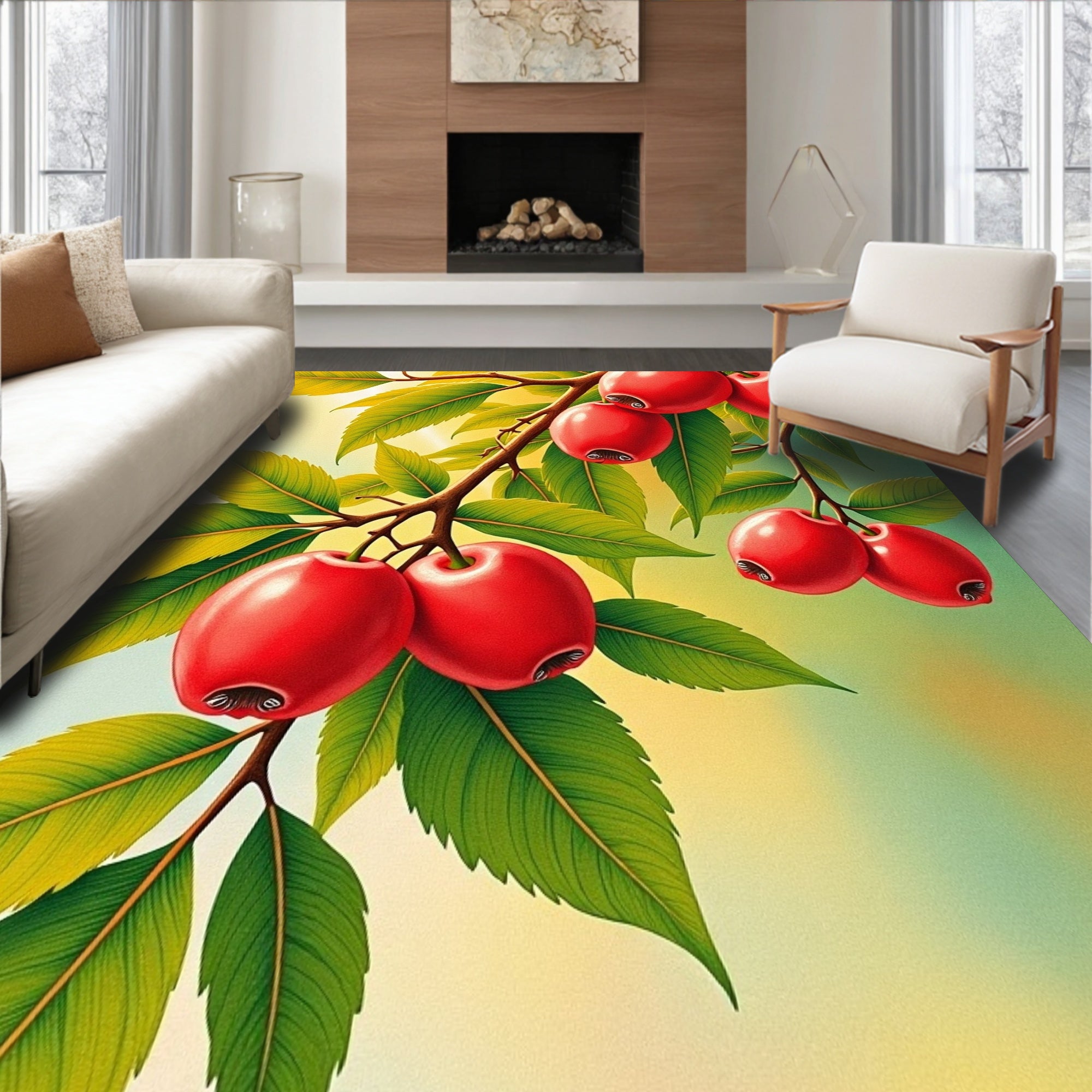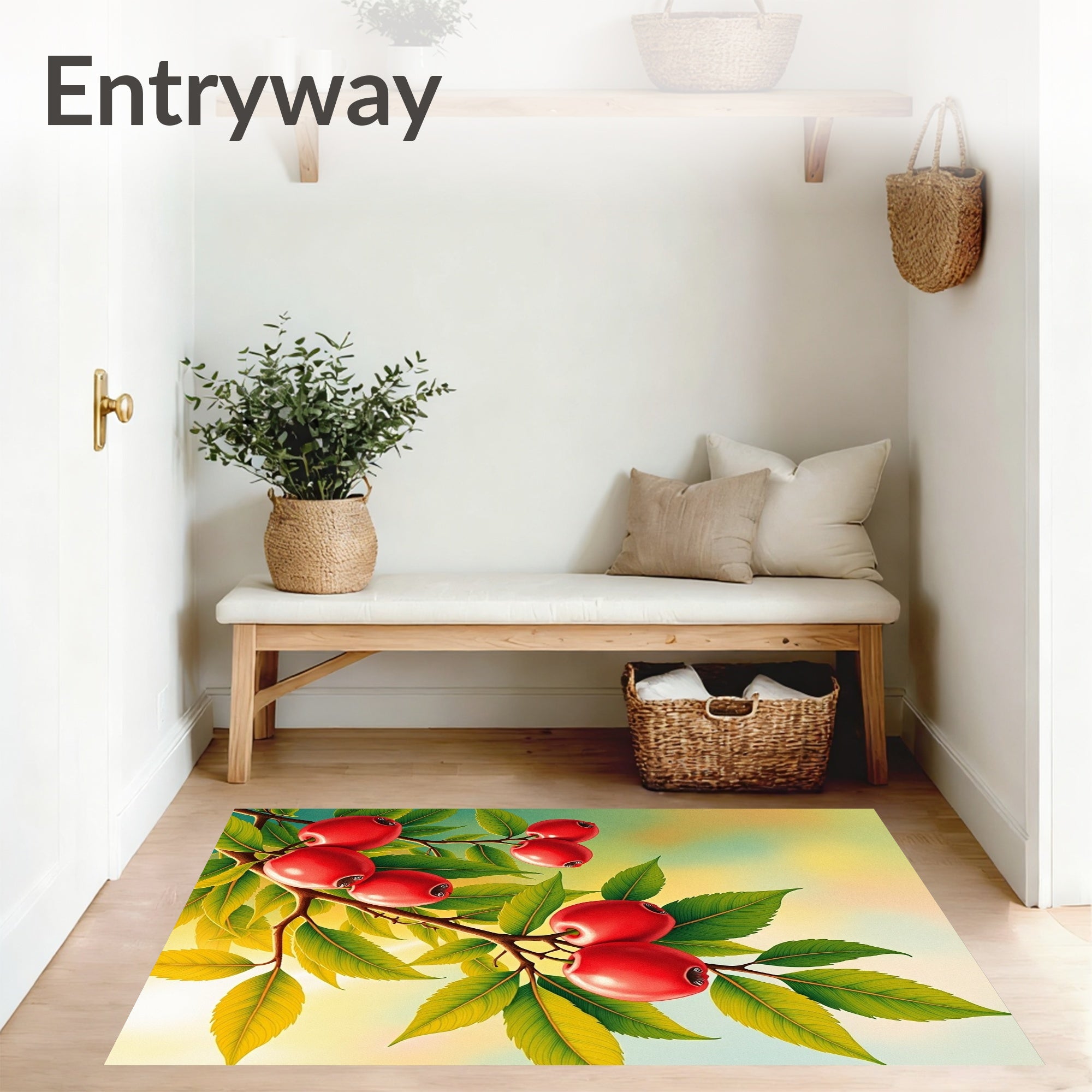 Ultra Soft Area Rug, Non Slip, Stain Resistant, Washable Area Rugs for Living Room, Bedroom, Bountiful Orchard Pathway Semicircular Front Porch Accent(Red) Overview: