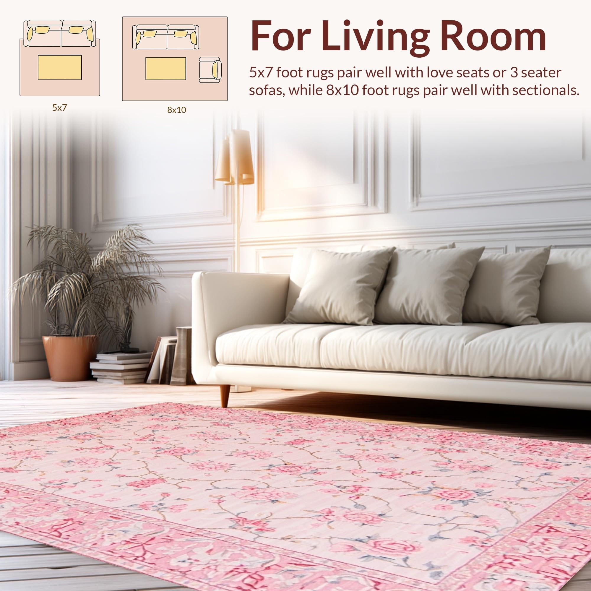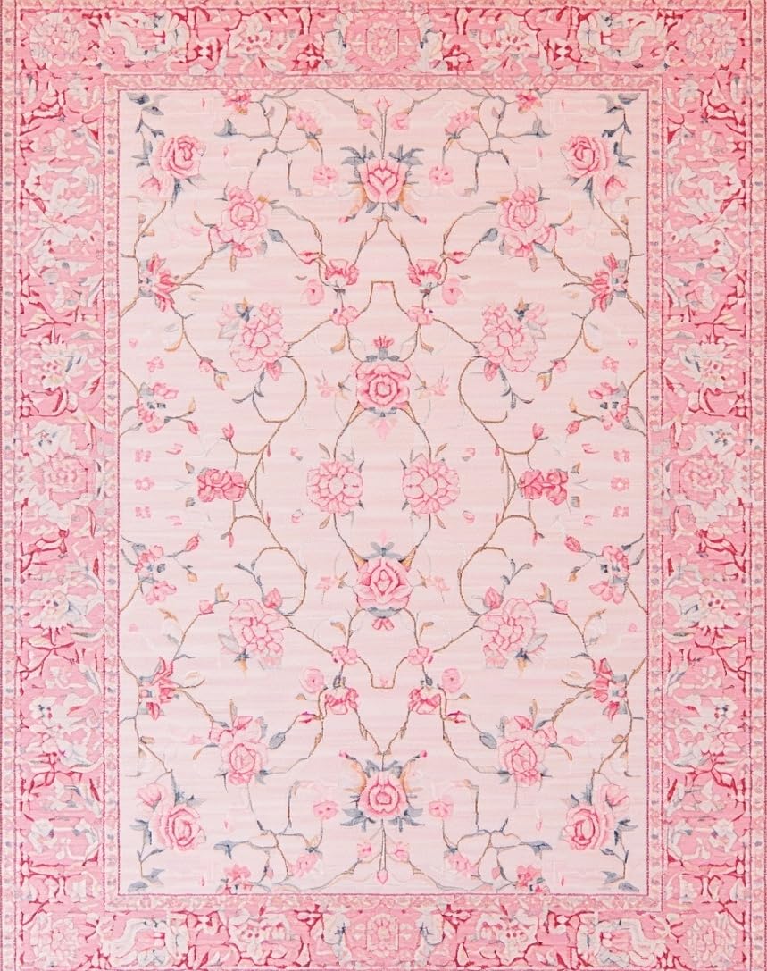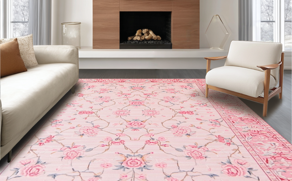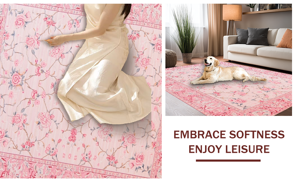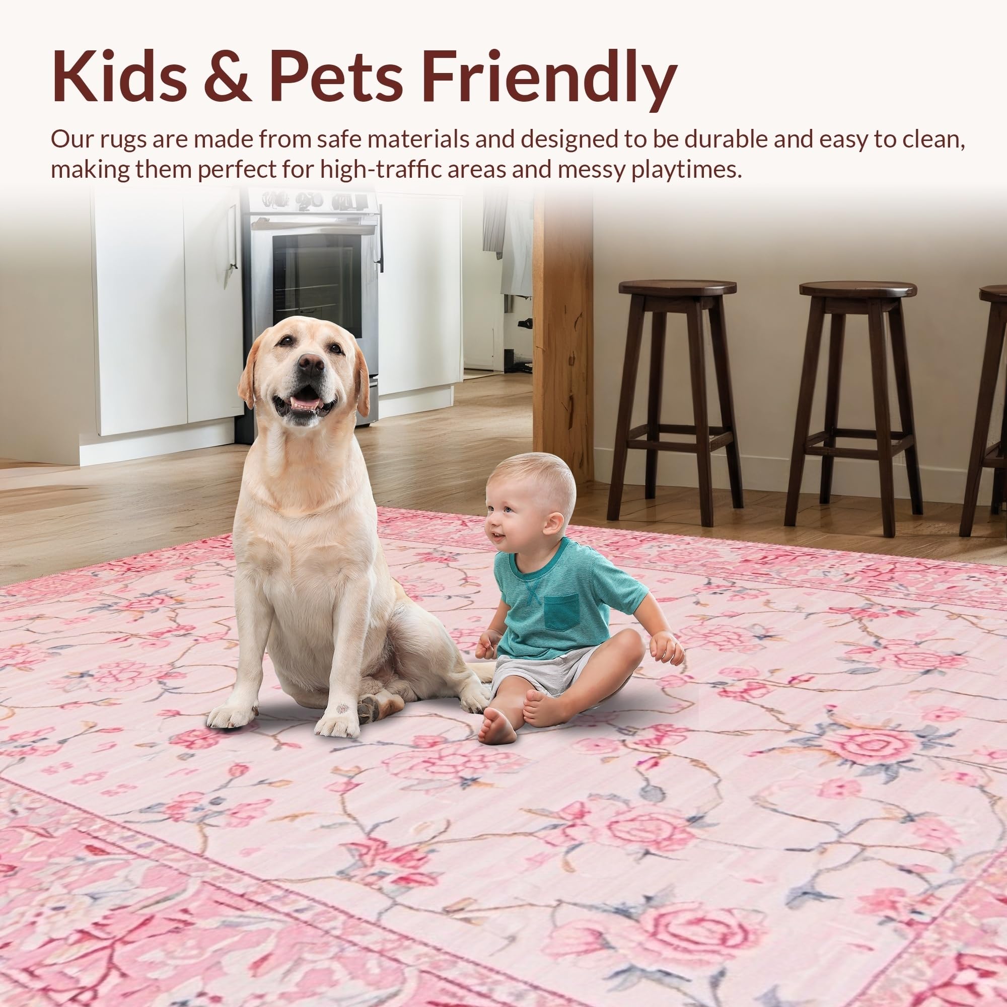 Ultra Soft Area Rug, Non Slip, Stain Resistant, Washable Area Rugs for Living Room, Bedroom, Breezy Lighthearted Cozy Patterns(Pink) Overview: