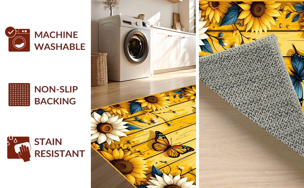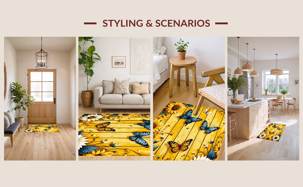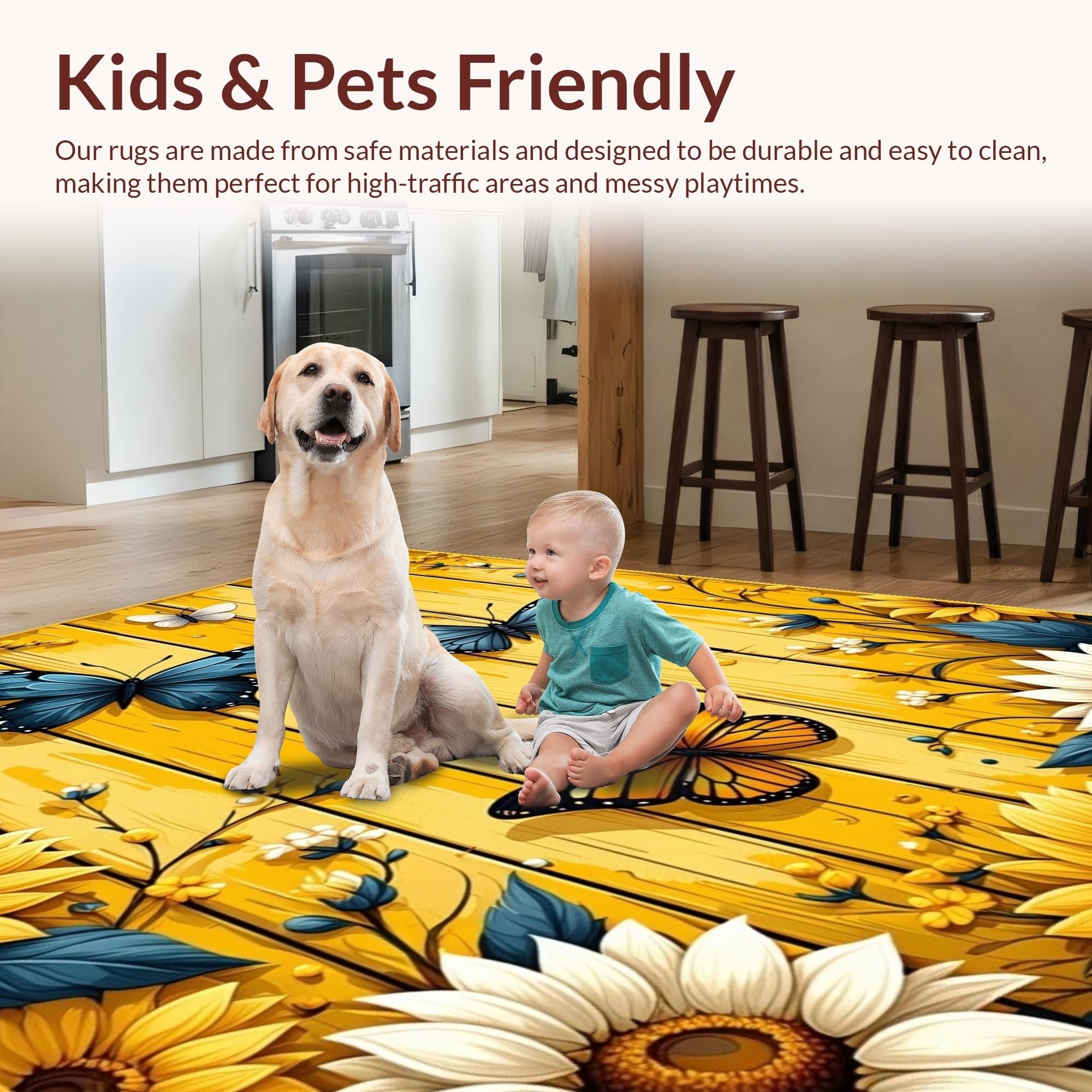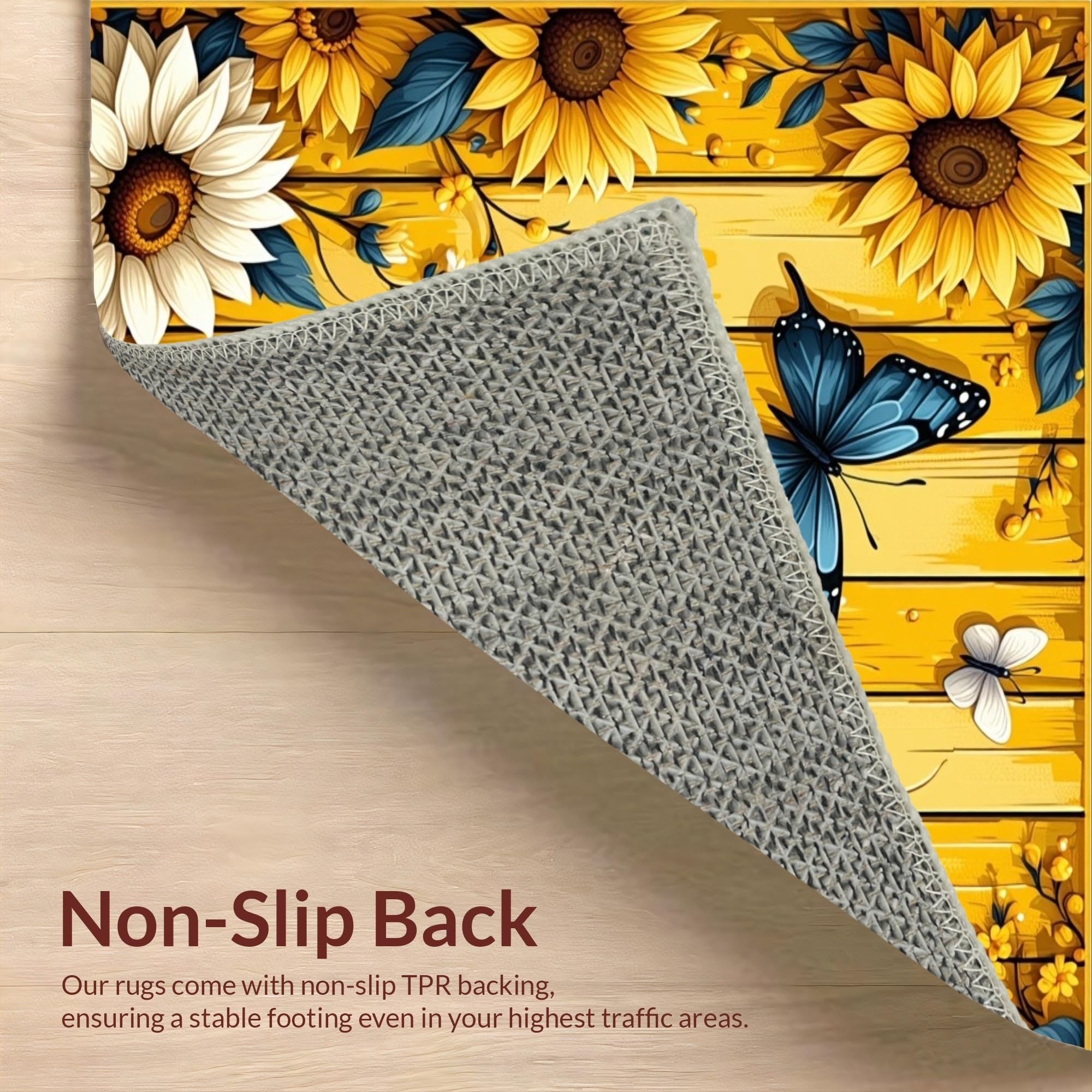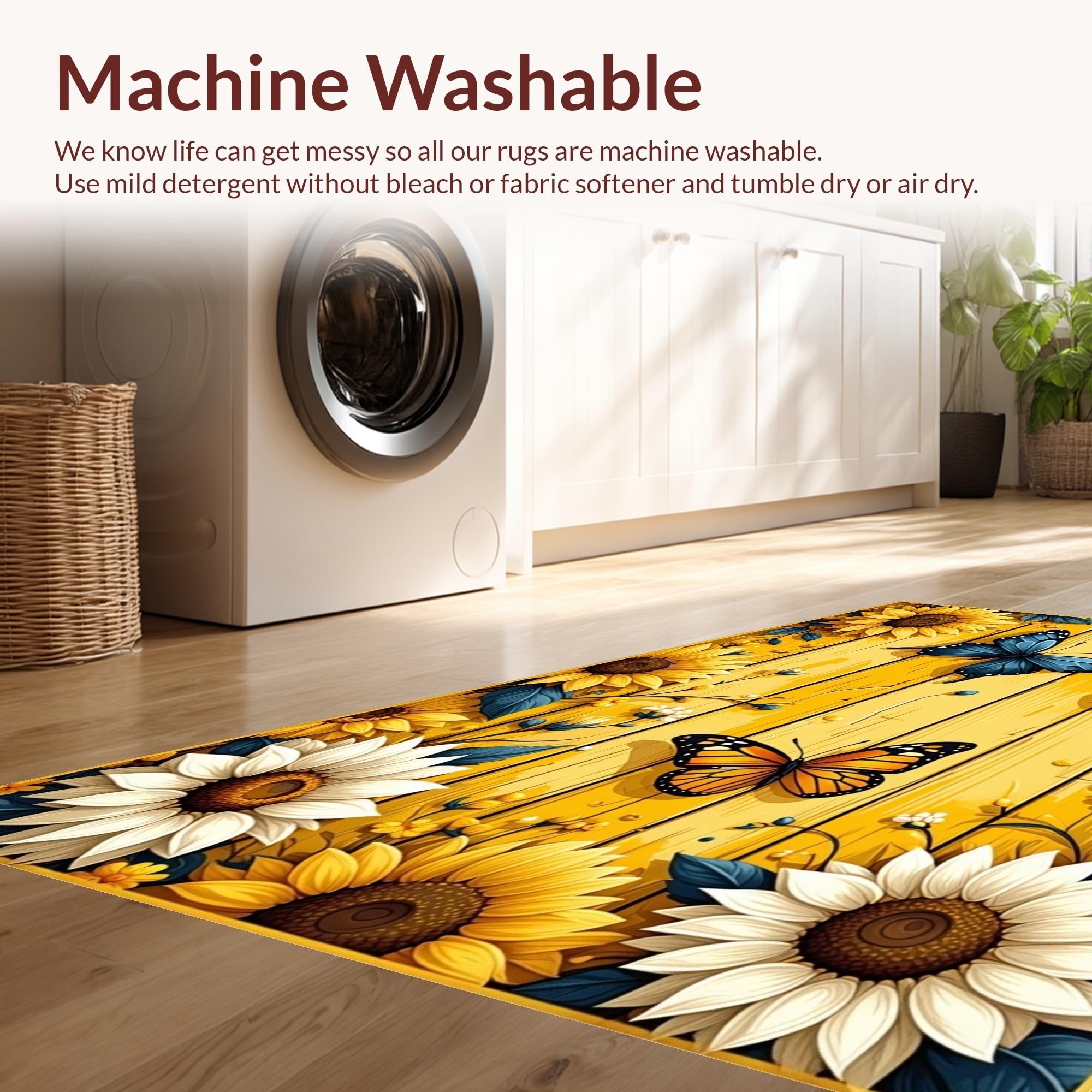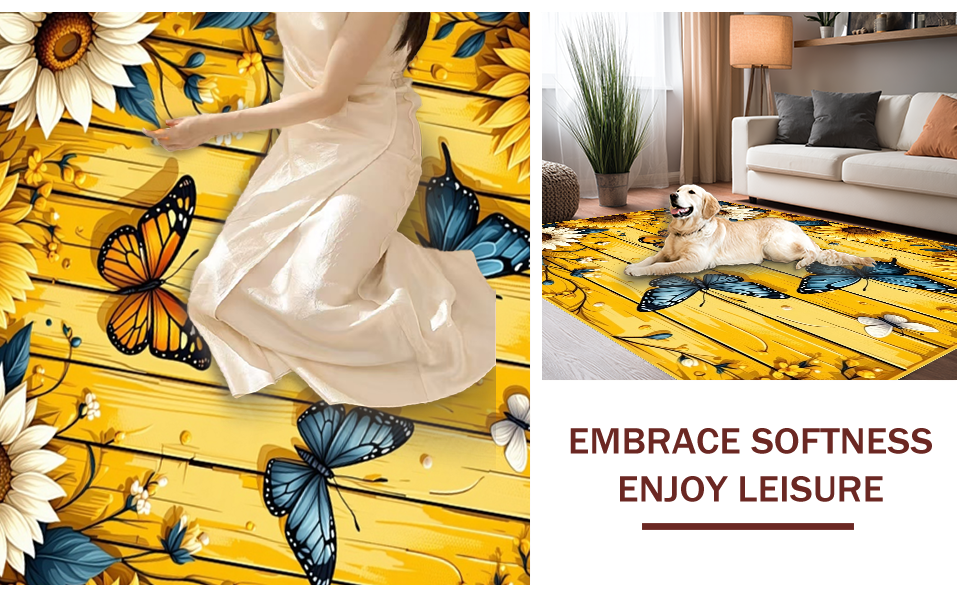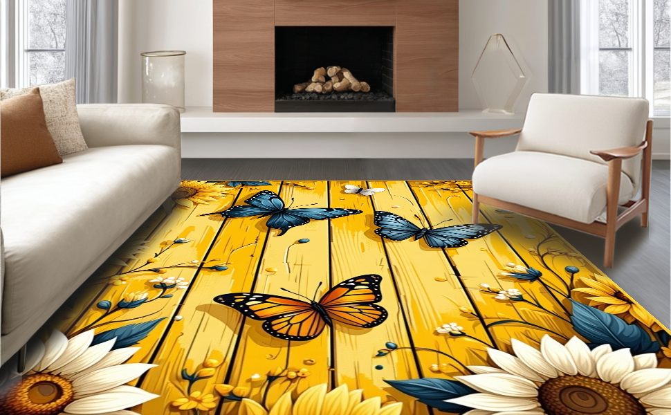 Ultra Soft Area Rug, Non Slip, Stain Resistant, Washable Area Rugs for Living Room, Bedroom, Bright Butterfly Garden Inspiration(Yellow) Overview: