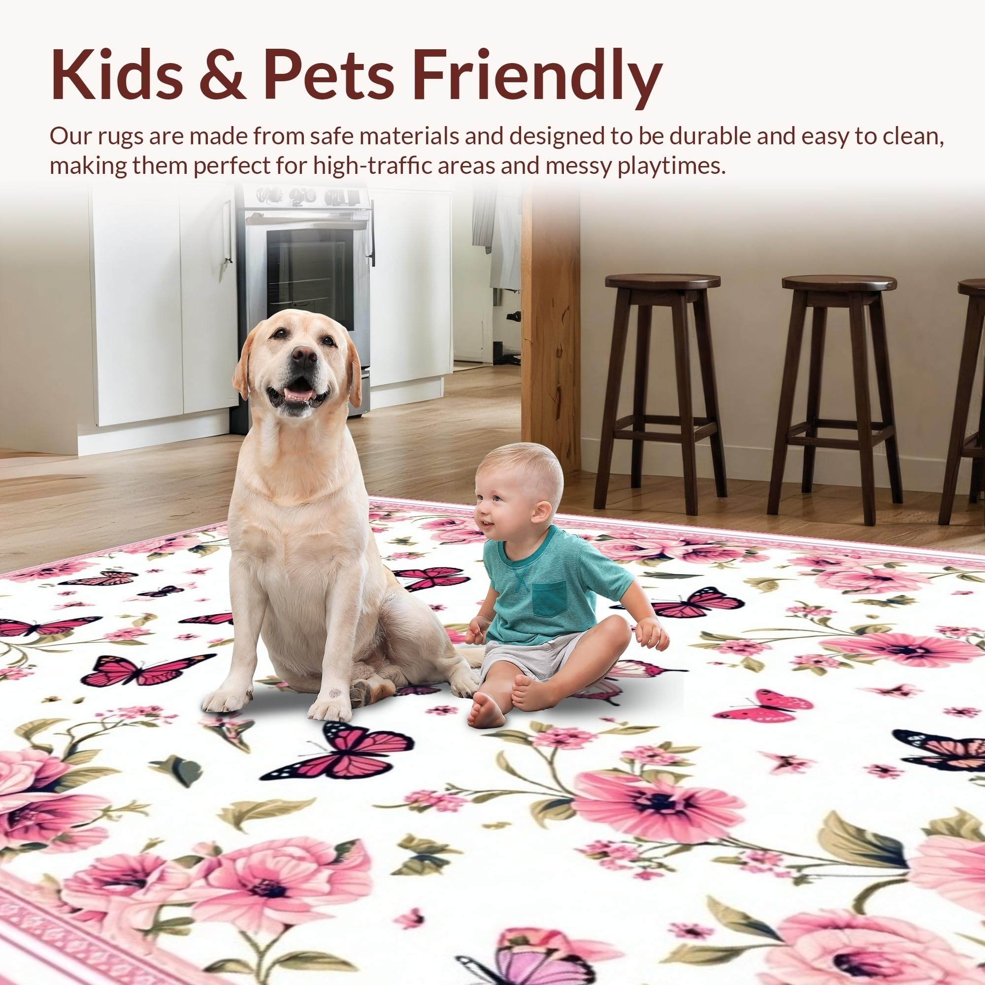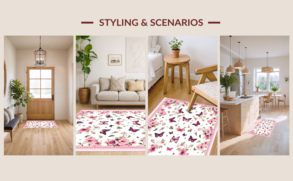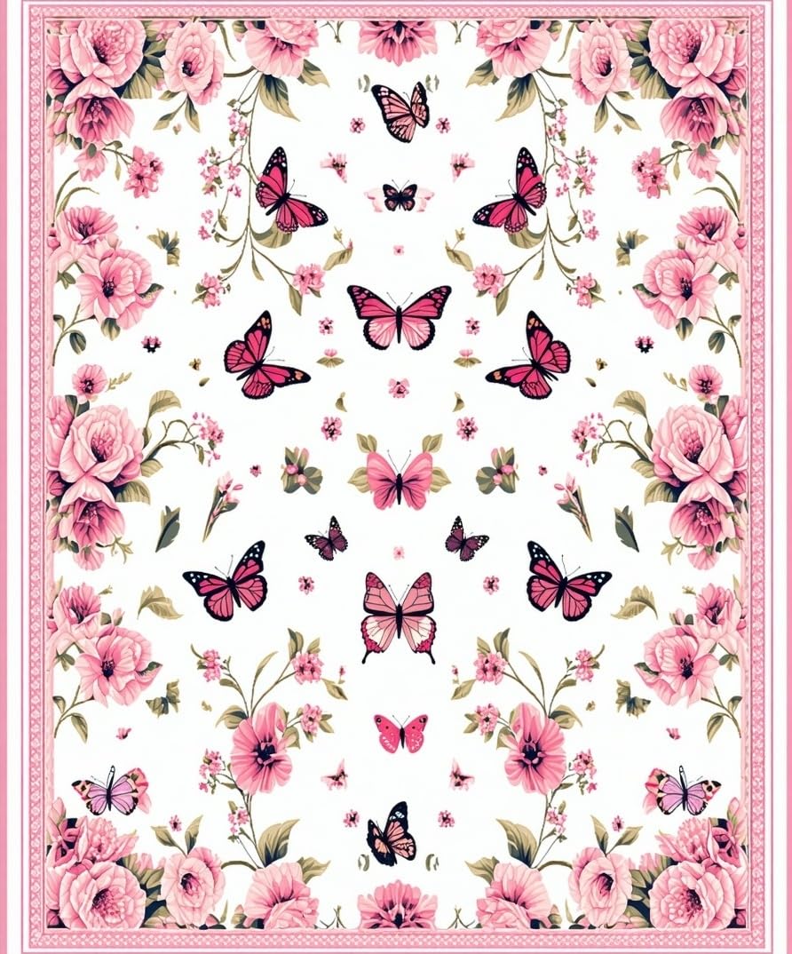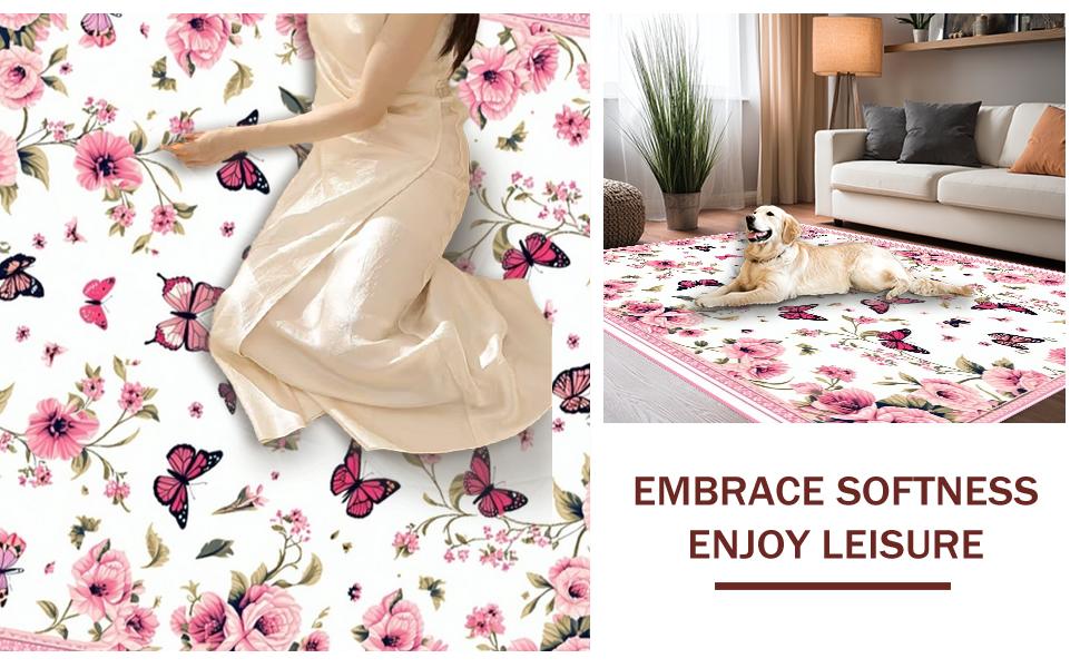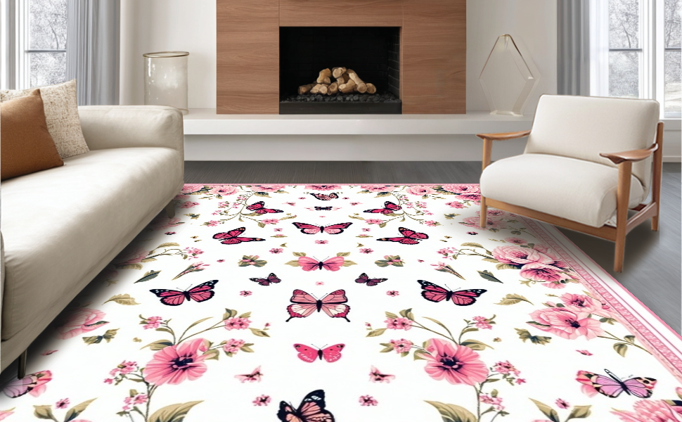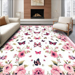 Ultra Soft Area Rug, Non Slip, Stain Resistant, Washable Area Rugs for Living Room, Bedroom, Bright Cheerful Floral Dreamscape(White) Overview: