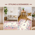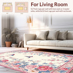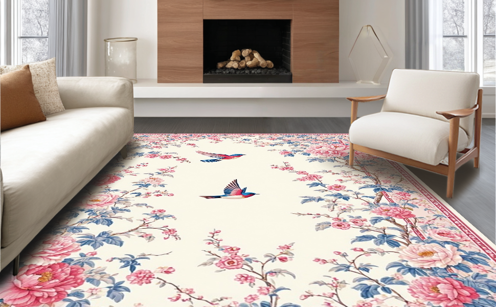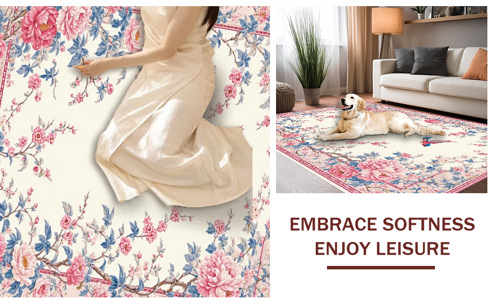 Ultra Soft Area Rug, Non Slip, Stain Resistant, Washable Area Rugs for Living Room, Bedroom, Bright Cheerful Garden Motif(Ivory) Overview:
